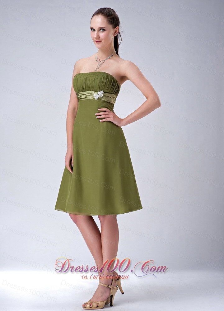 Olive Green Empire Ruched Bridesmaid Dress Knee-length
