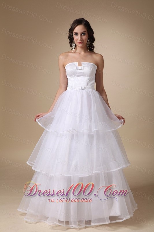 Satin and Organza Layers Bridal Dress Strapless A-line