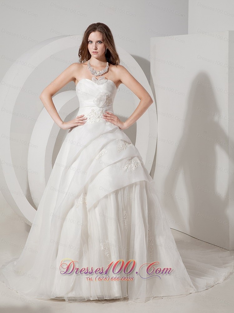 Sweetheart Appliques A-line Bridal Gown Court Train Organza