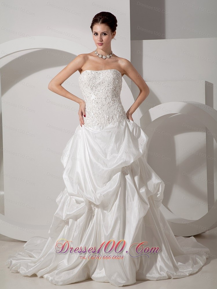 Strapless Court Train A-line Wedding Dress Taffeta Appliques