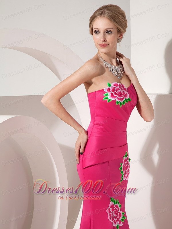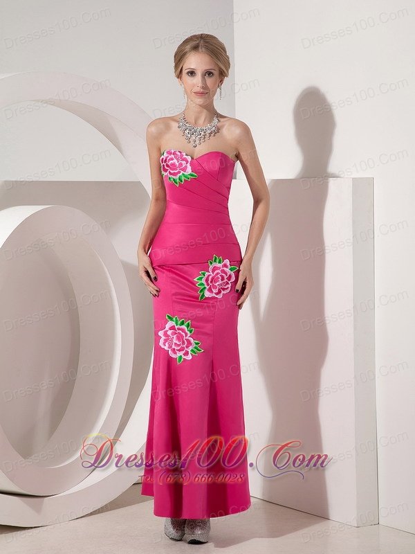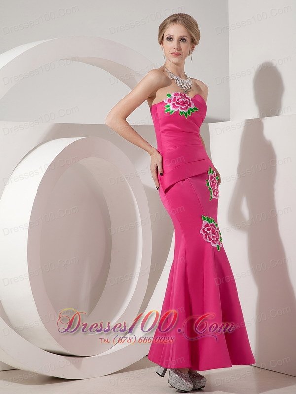 Applique Mermaid Hot Pink Ankle-length Cocktail Dress