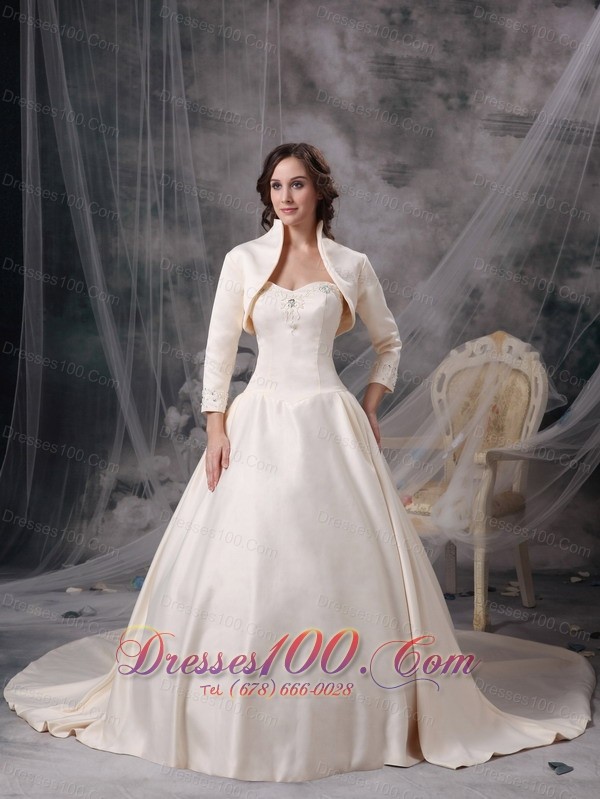 Champagne Sweetheart Appliques Wedding Dress Chapel Train