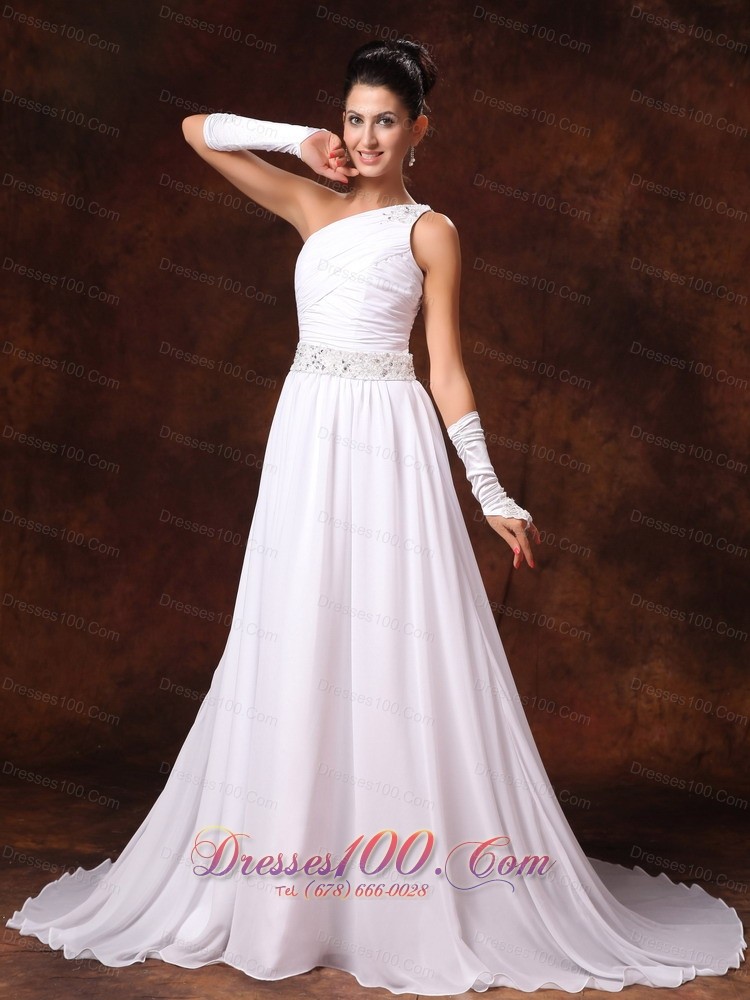 One Shoulder Chiffon Wedding Dress Empire Court Train
