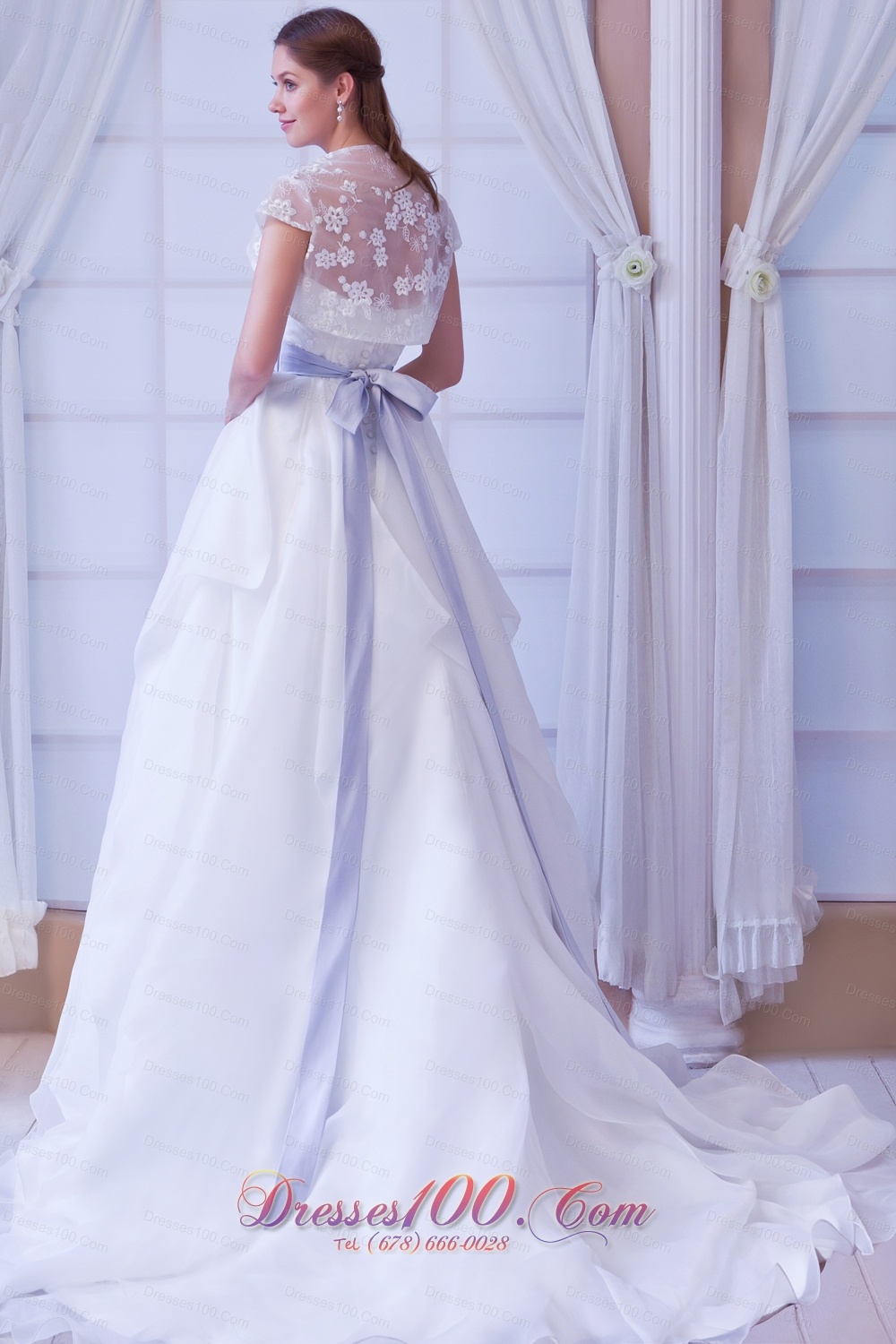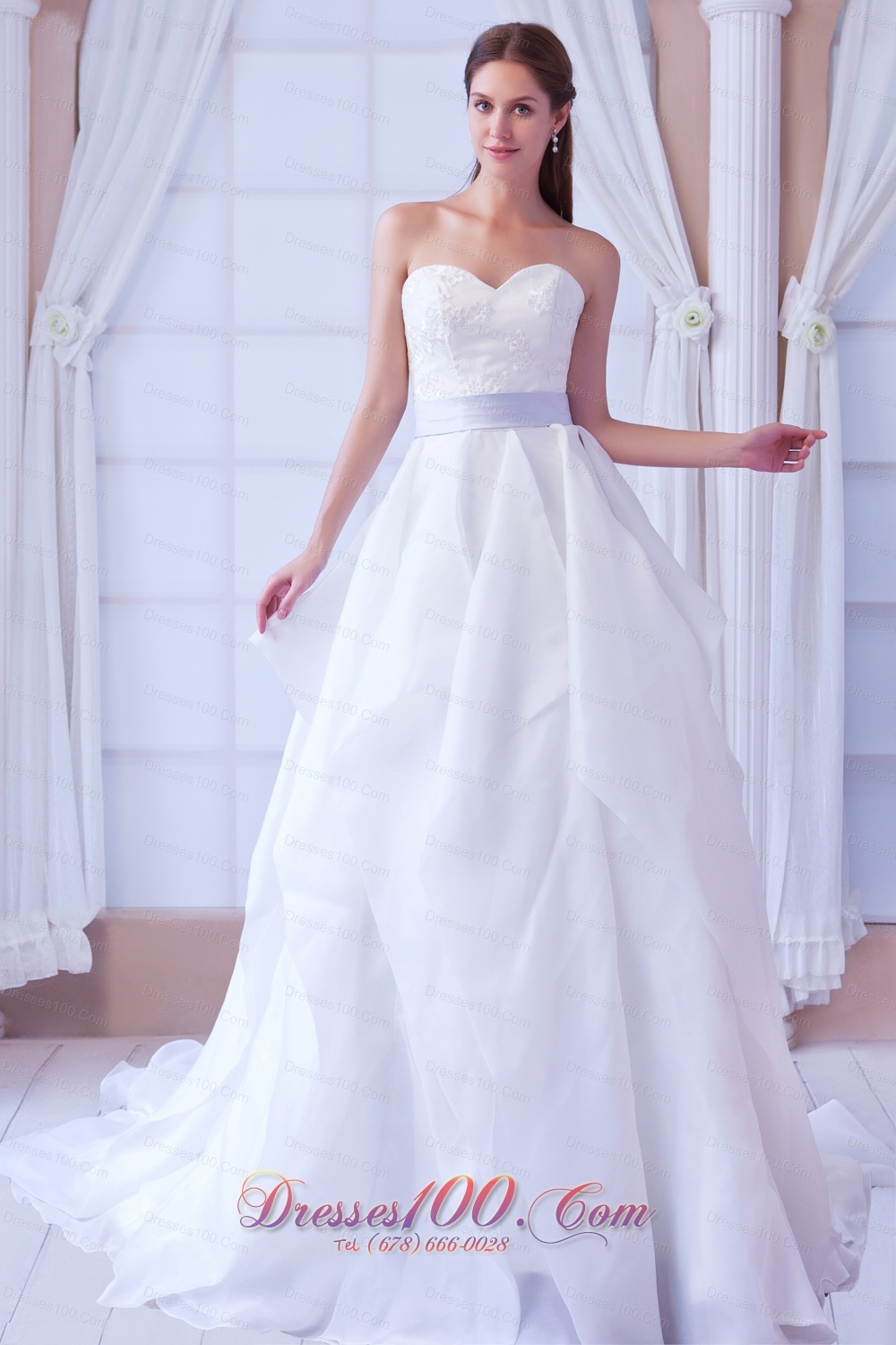 A-line Sweetheart Court Train Appliques Wedding Dress
