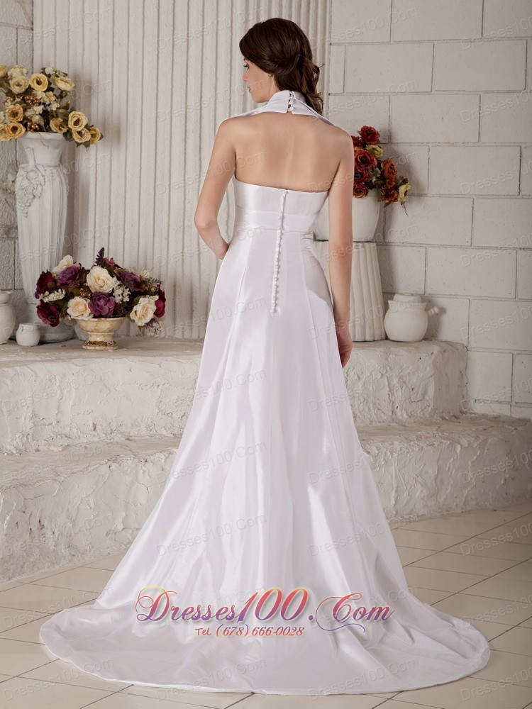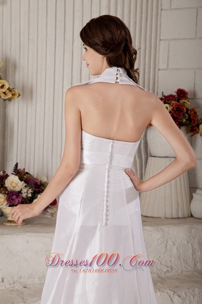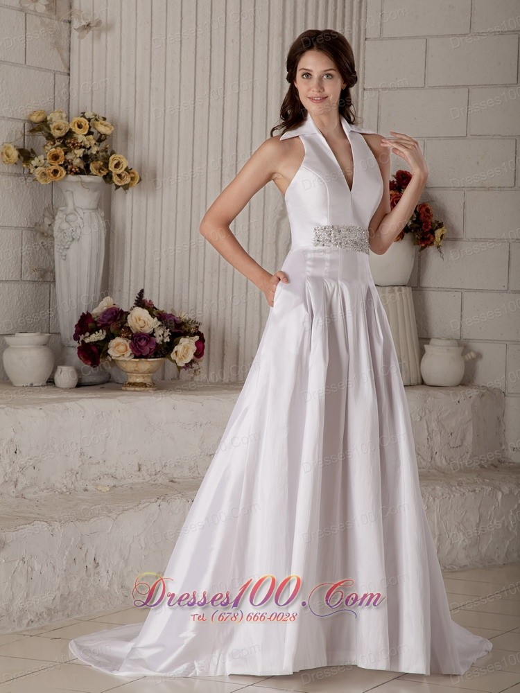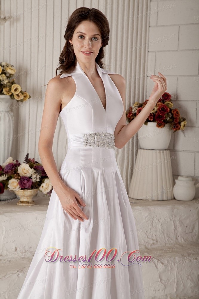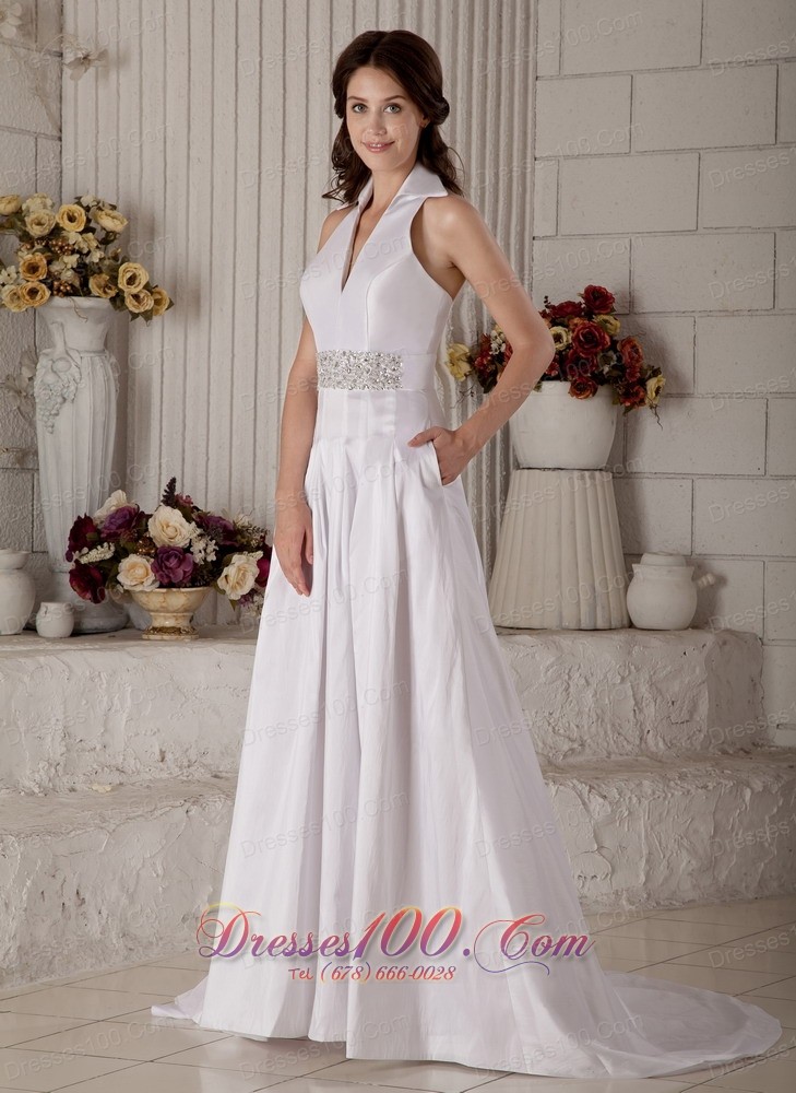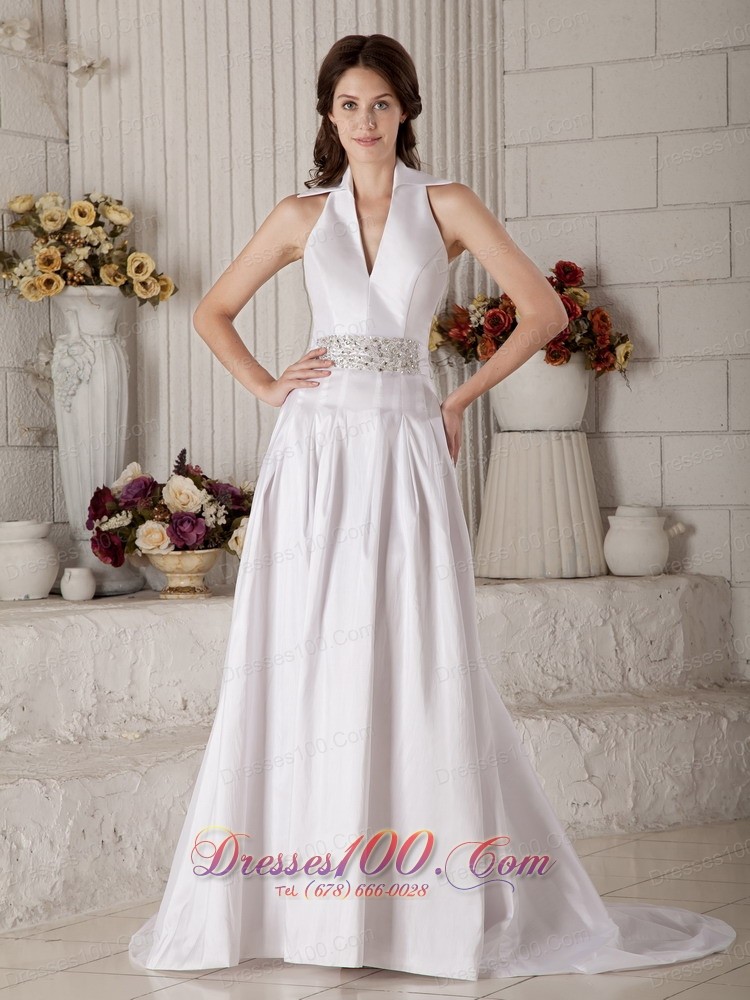 Vintage High-neck Wedding Bridal Gown Beaded Belt Taffeta