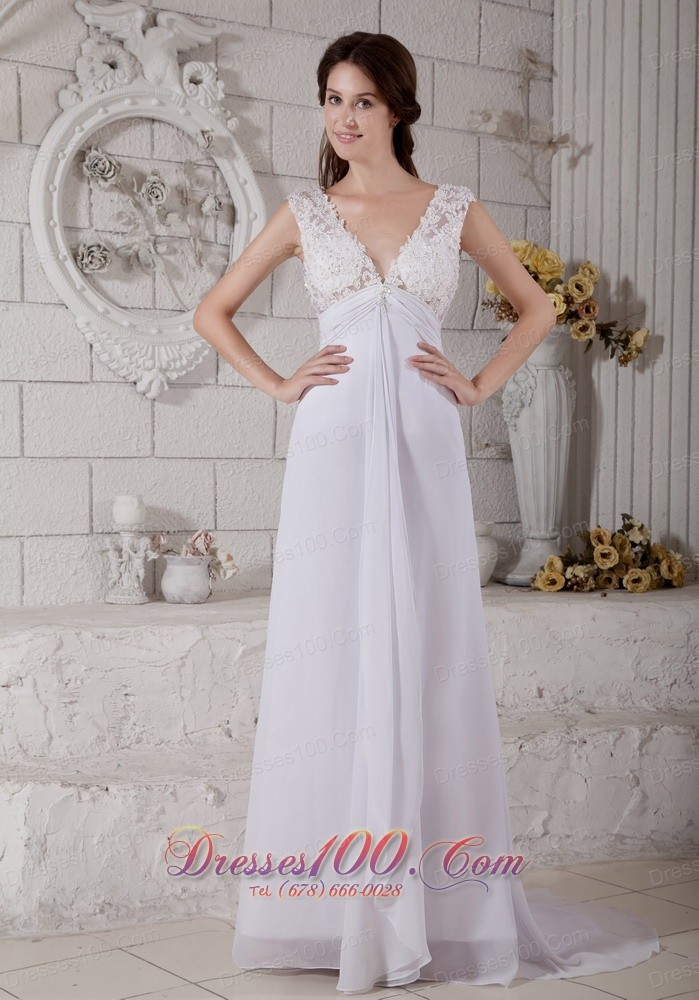 Customize Empire V-neck Lace Chiffon Beach Wedding Dresses