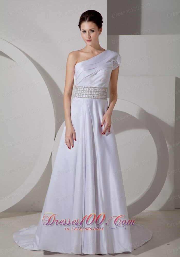 One Shoulder Crystal Belt Bridal Dress A-line Satin