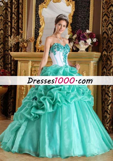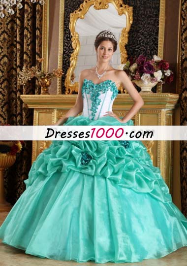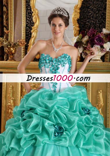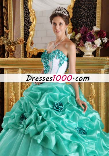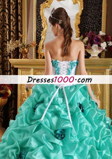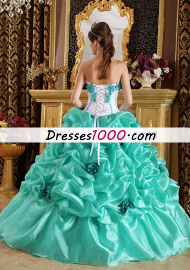 Turquoise 15 Quinceanera Dress Organza Handmade Flowers