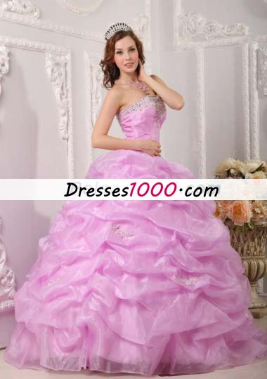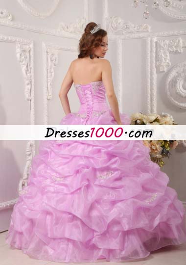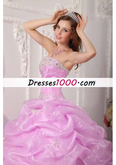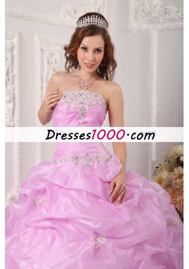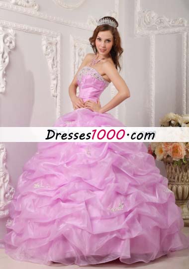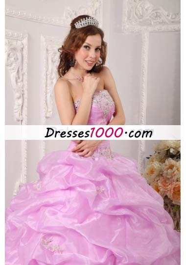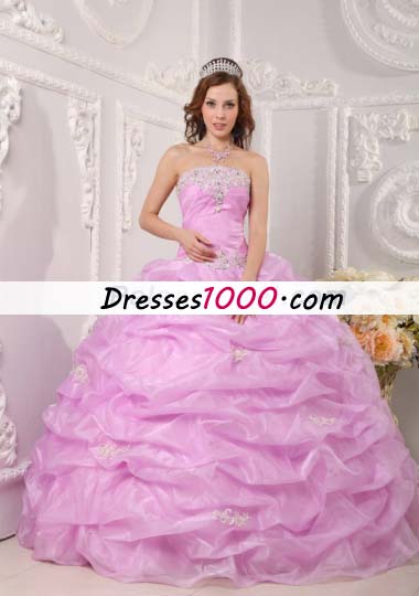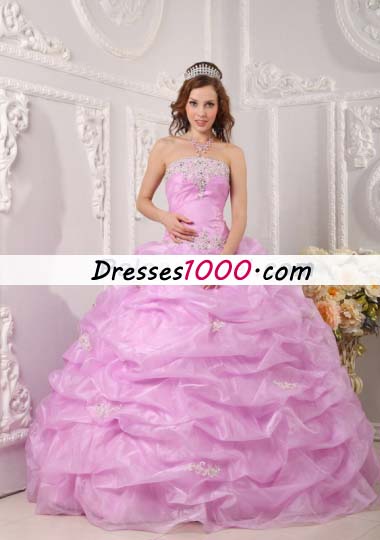 Lavender Strapless Pick Ups Organza Appliques Quinceanera Dress
