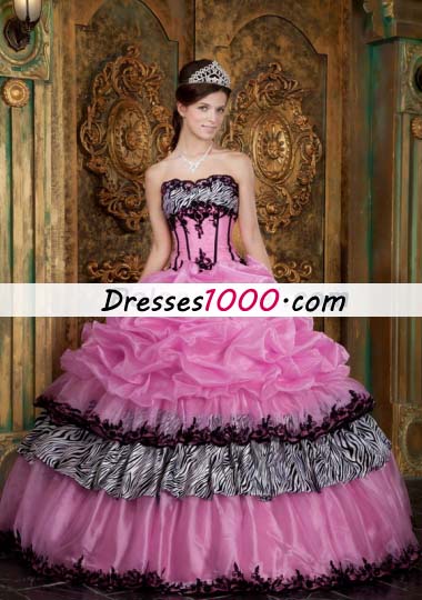 Sweet 16 Dress Rose Pink Zebra Ball Gown Picks-Up