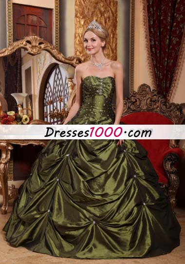 This wondrful ball gown quinceanera dress standout for the ruched bust and the pick-ups on the puffy skirt. This lovely gown has a sweetheart neckline with the bodice embellished with shining beads. The full skirt suits most of figures and the pick-ups with shining beads give you a sense of loveliness and elegance.The dress is completed with lace up ties.