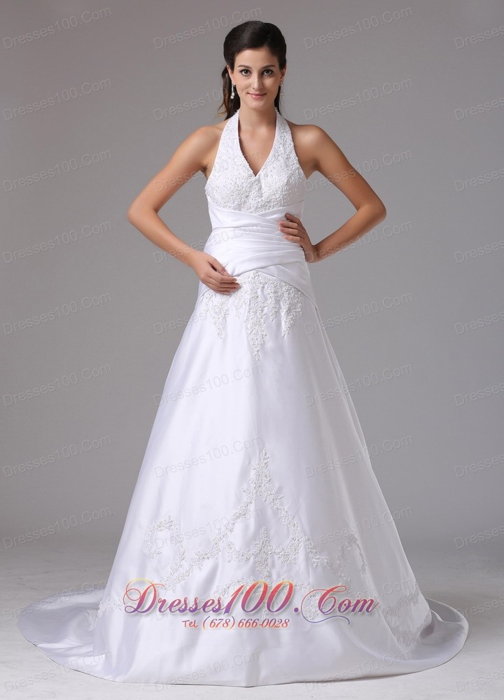 Custom Made Halter Bridal Dress Embroidery Wrapped Waist