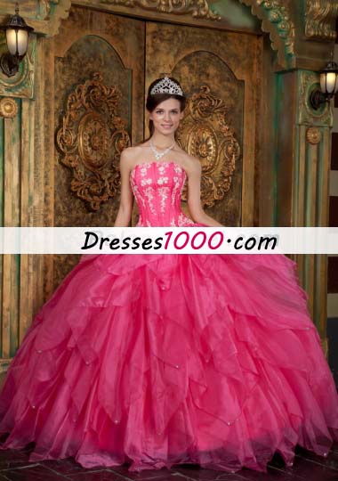 Ball Gown Appliques Organza Hot Pink Quinceanera Dress
