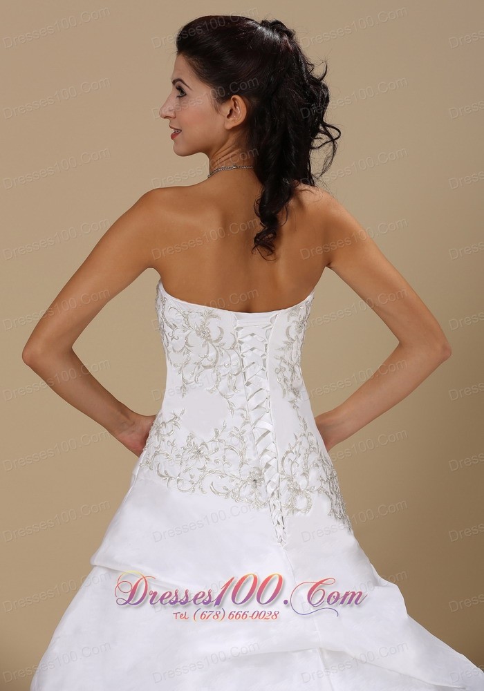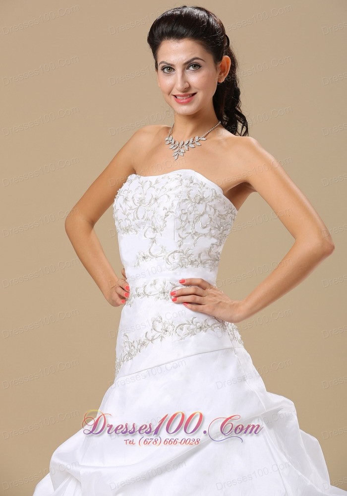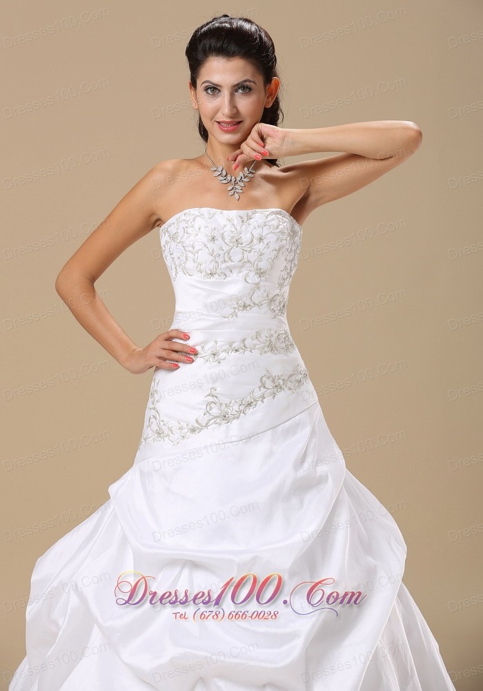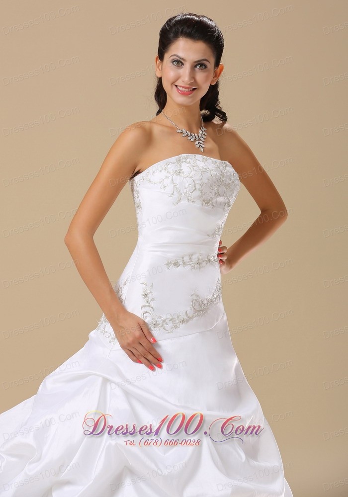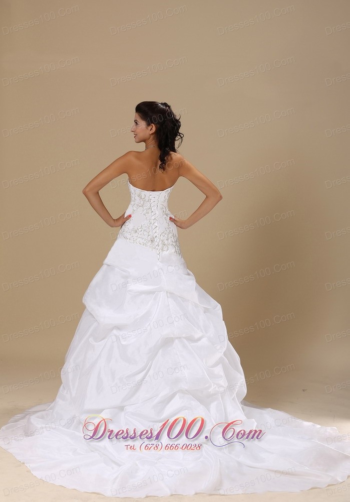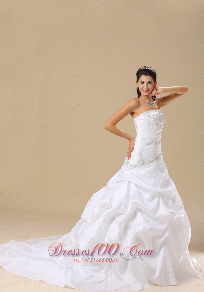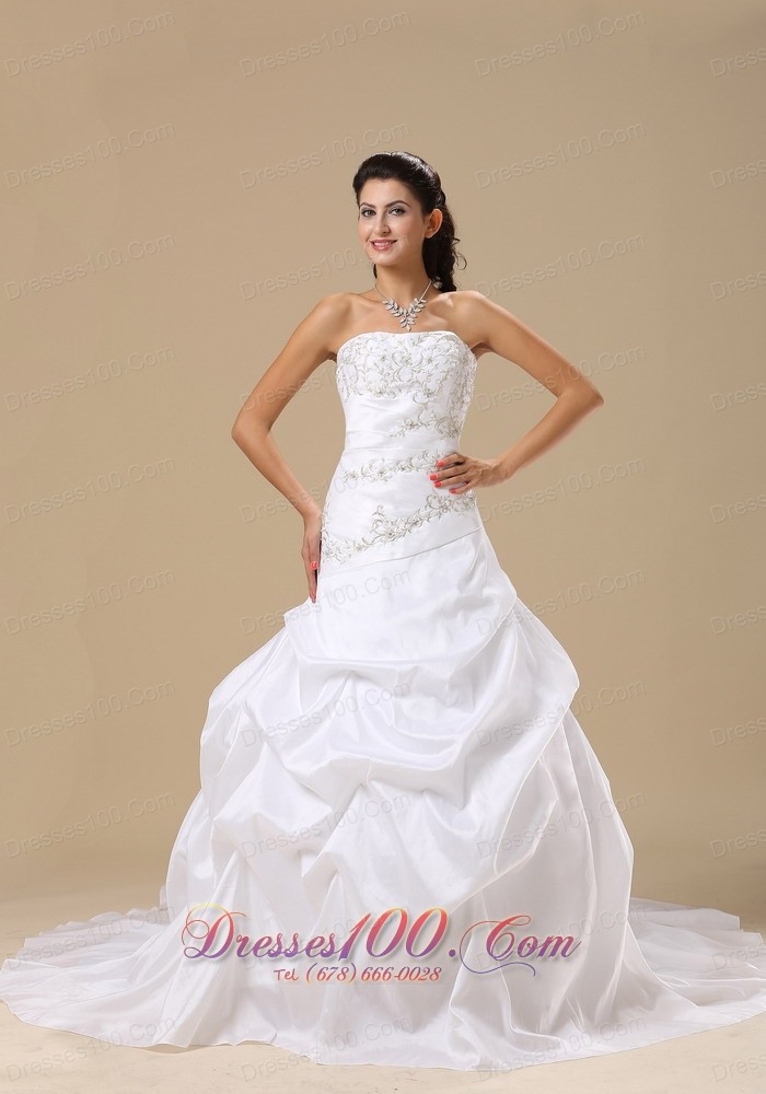 Embroidery Chapel Train Bridal Gowns Pick-ups Taffeta