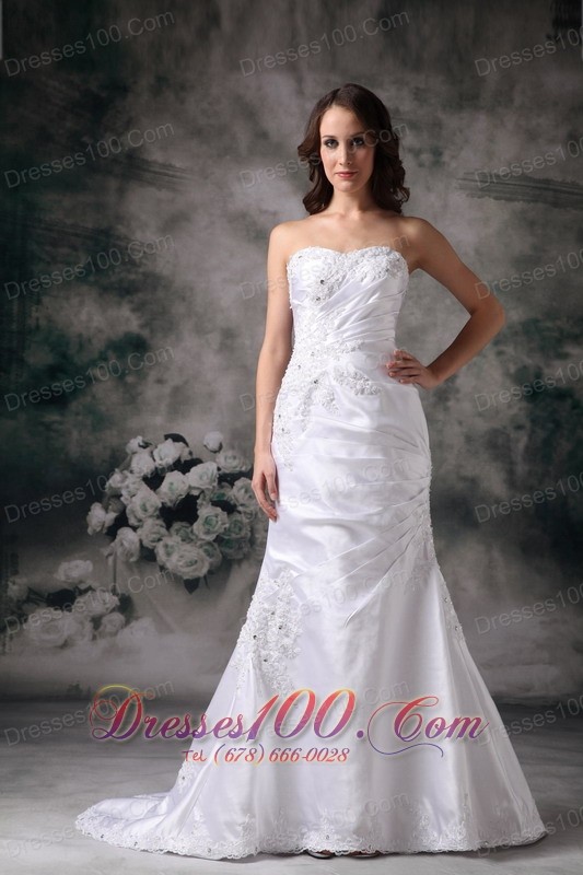 Beautiful Column Appliques Church Wedding Bridal Dress