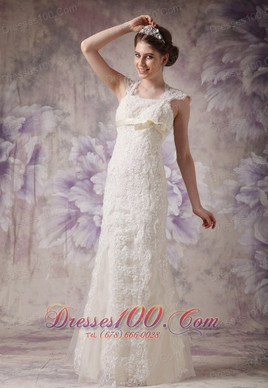 Exquisite Lace Wedding Dress Straps Bow Floor-length