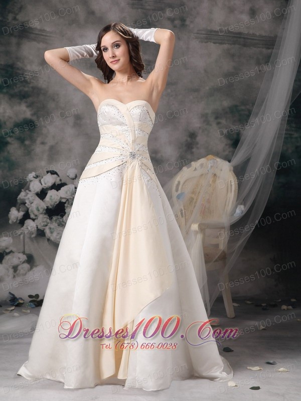 White and Champagne Church Wedding Dress Sweetheart Crystal
