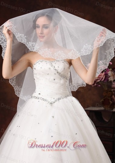 Two-tier Organza White Lace Appliques and Veil for Wedding