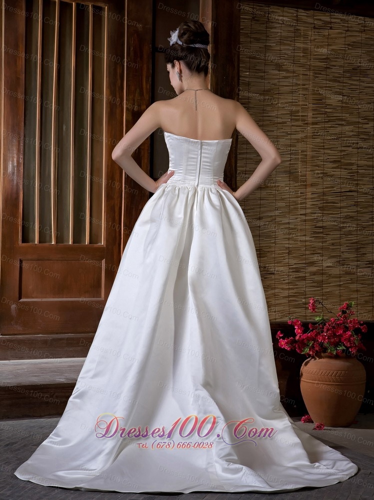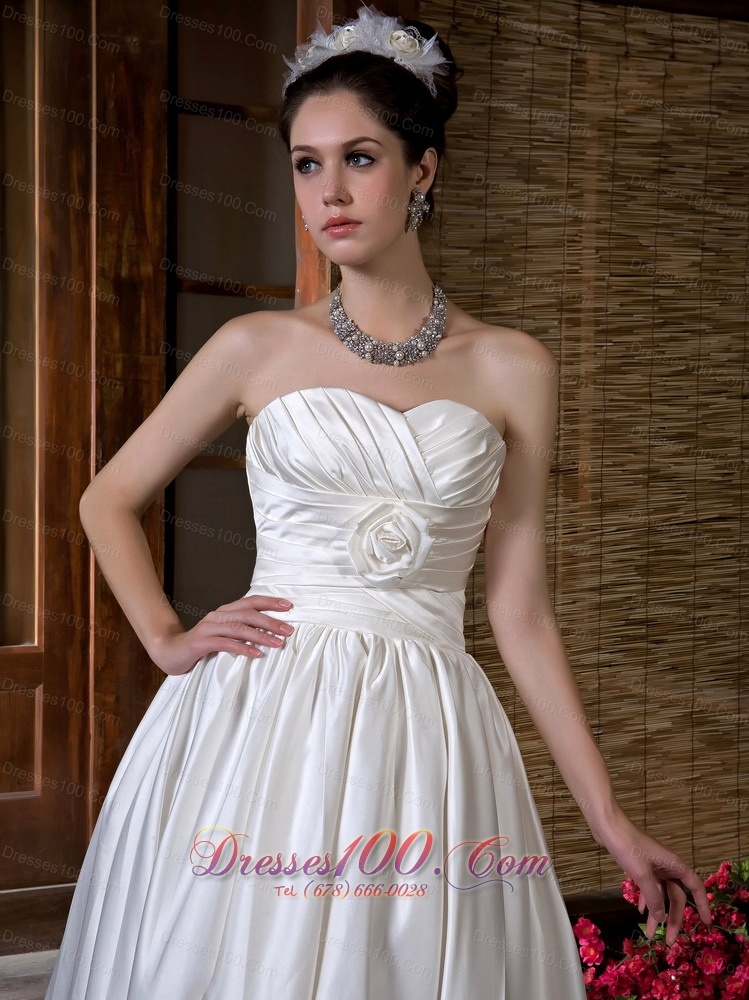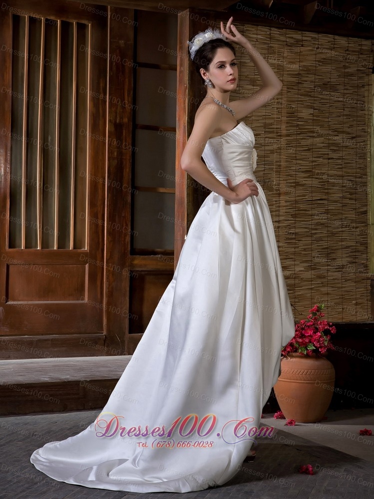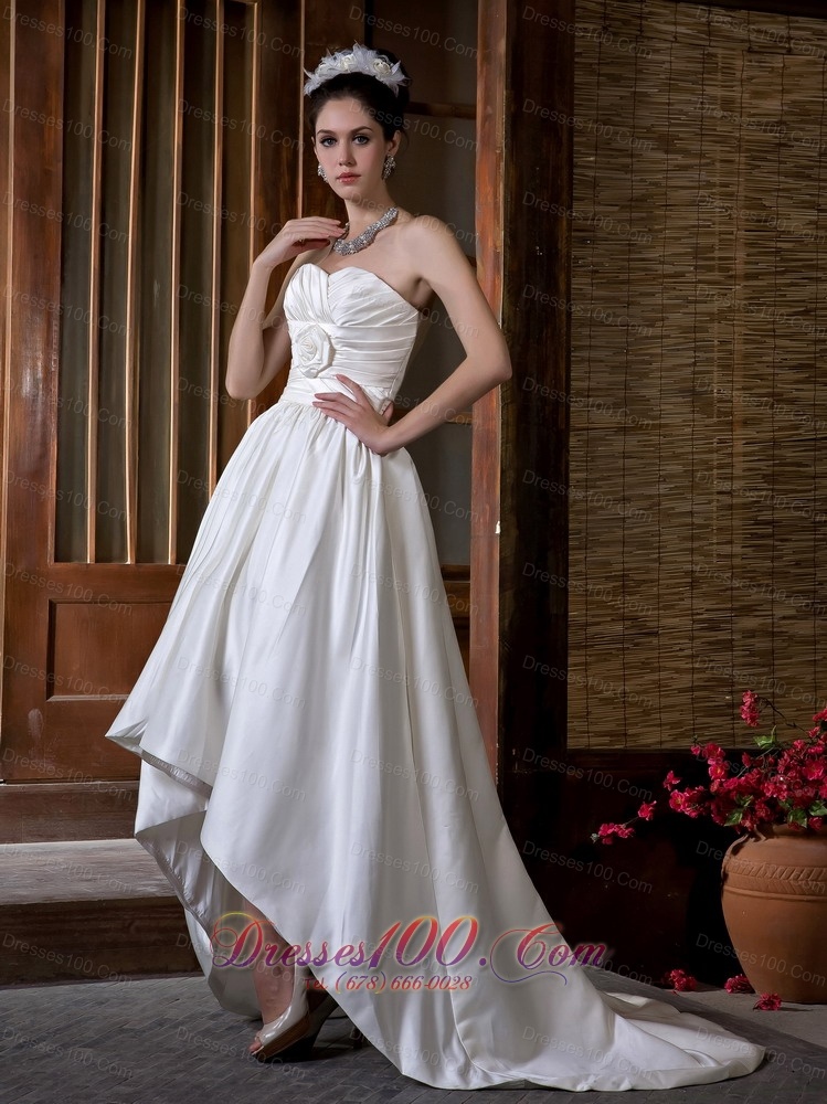 High Low Wedding Dress Hand Made Flowers Sweetheart Train