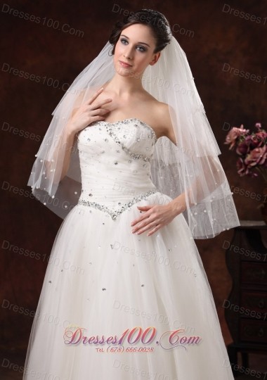 Wedding Party Pearl Trim Edge Tulle Bridal Veil