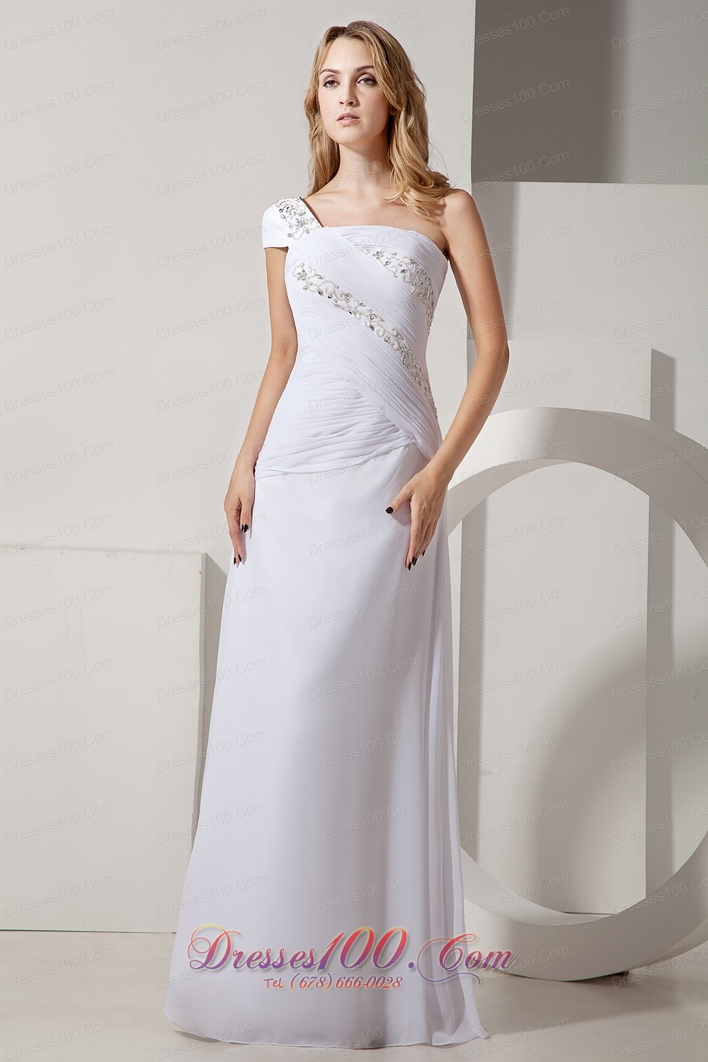 Column One Shoulder Cap Sleeve Beach Bridal Dress Chiffon