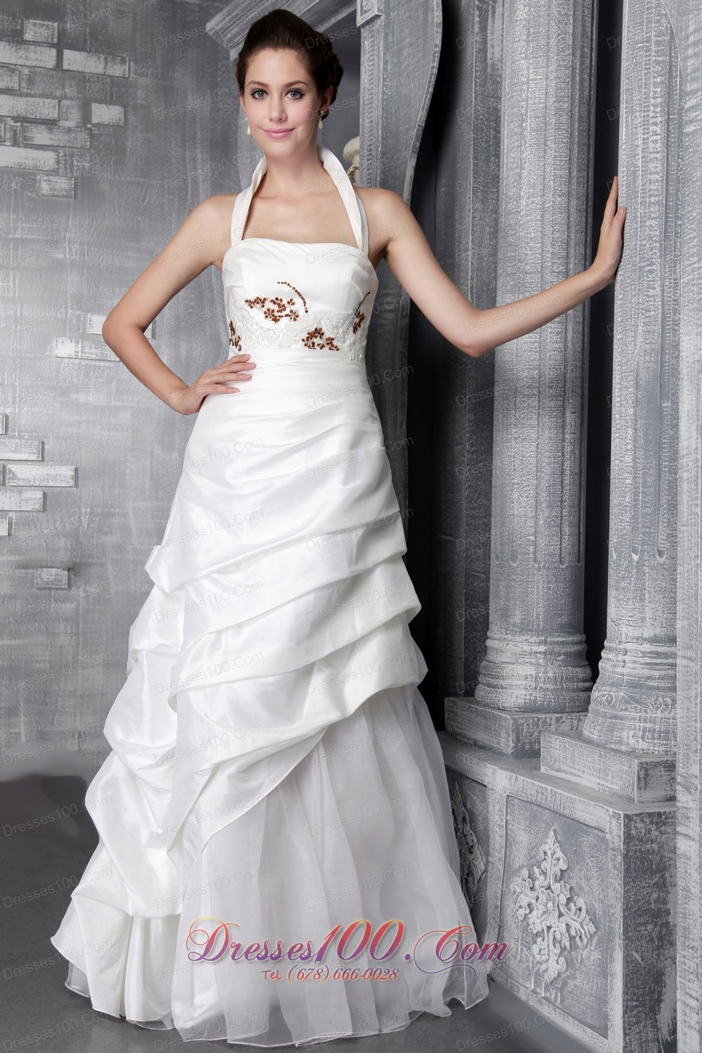 Princess Halter Appliques Wedding Gowns Floor-length Tiered