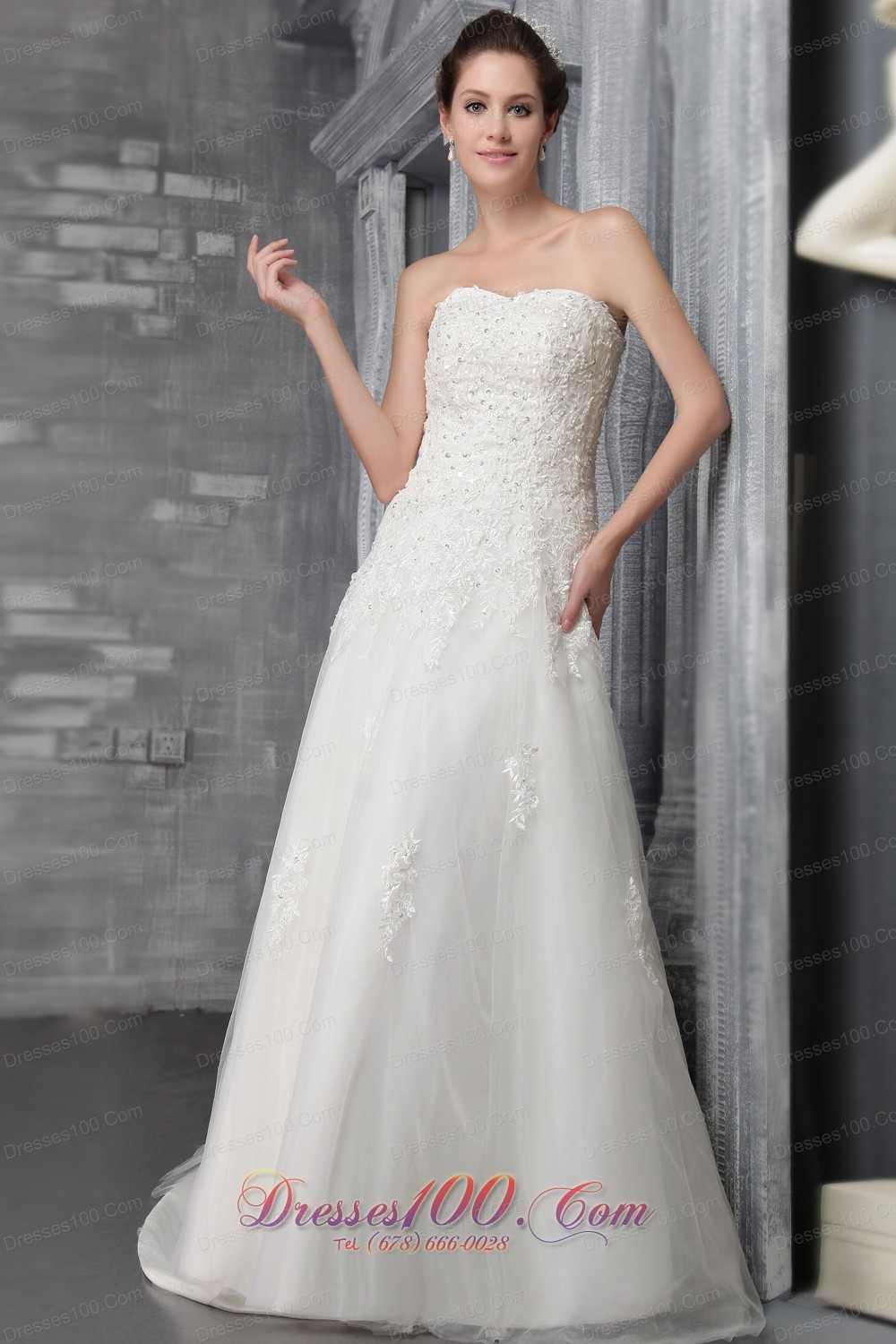 Gorgeous Appliques Beaded Bridal Dress Strapless Court Tulle