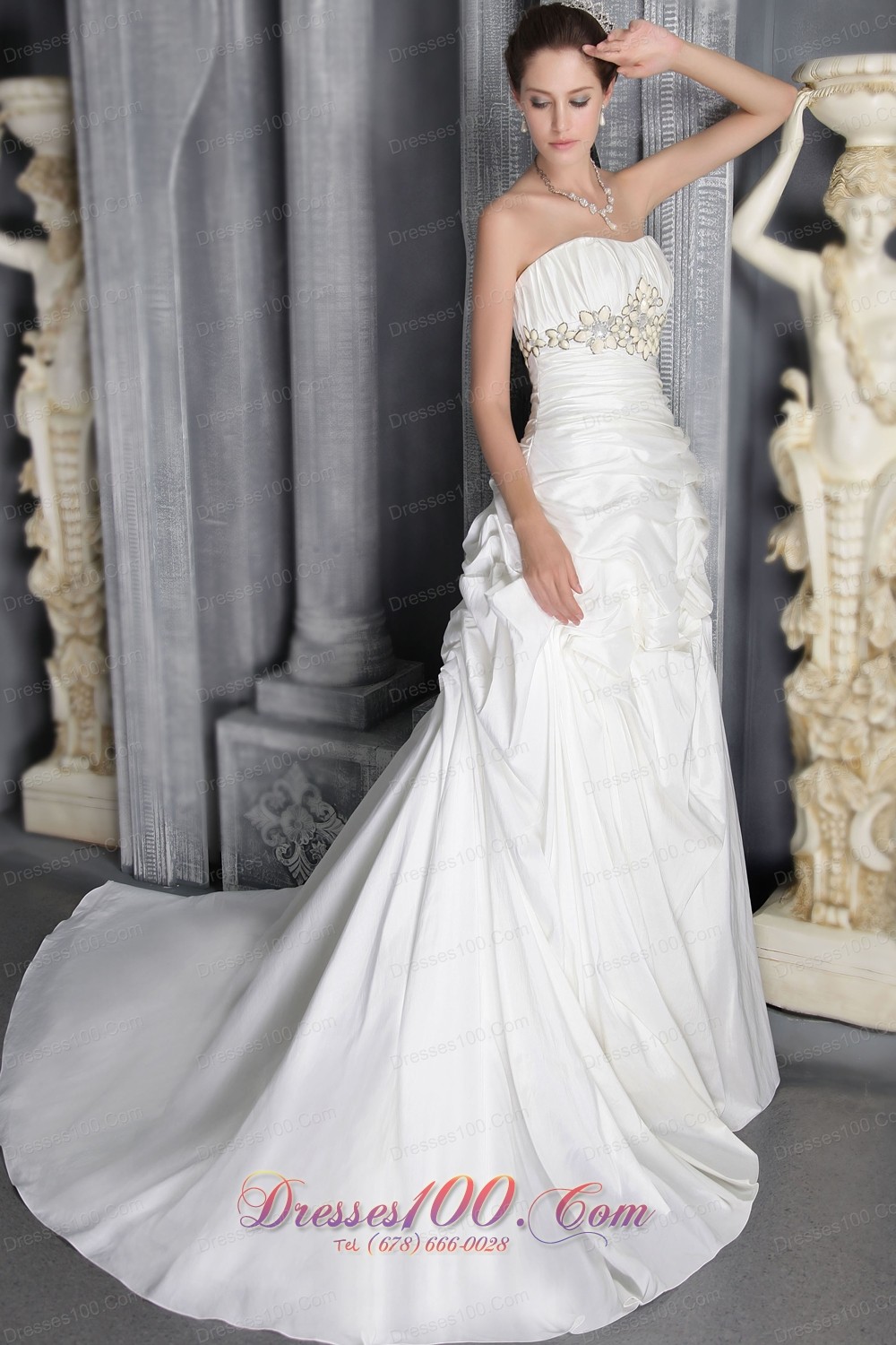 This is a very amazing wedding dress. This new designed dress is made of high quality satin which make it looks wonderful and gorgeous.The big skirts are balanced with tiny, form-fitting bodices that highlight the bust and a feminine defined waist. This kind of wedding dress features strapless design.The beading material decorates on the bodice to flatter its vintage style. Ball gown silhouette with train cascades to floor and sweeping.Wear it, the bride looks beautiful no matter which Angles people look her. The workmanship is also very fantastic and wonderful.