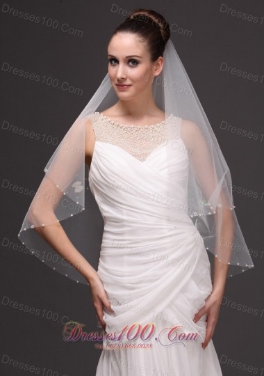 Product Name: 2 Layers Tulle With Pearls Fingertip Veil