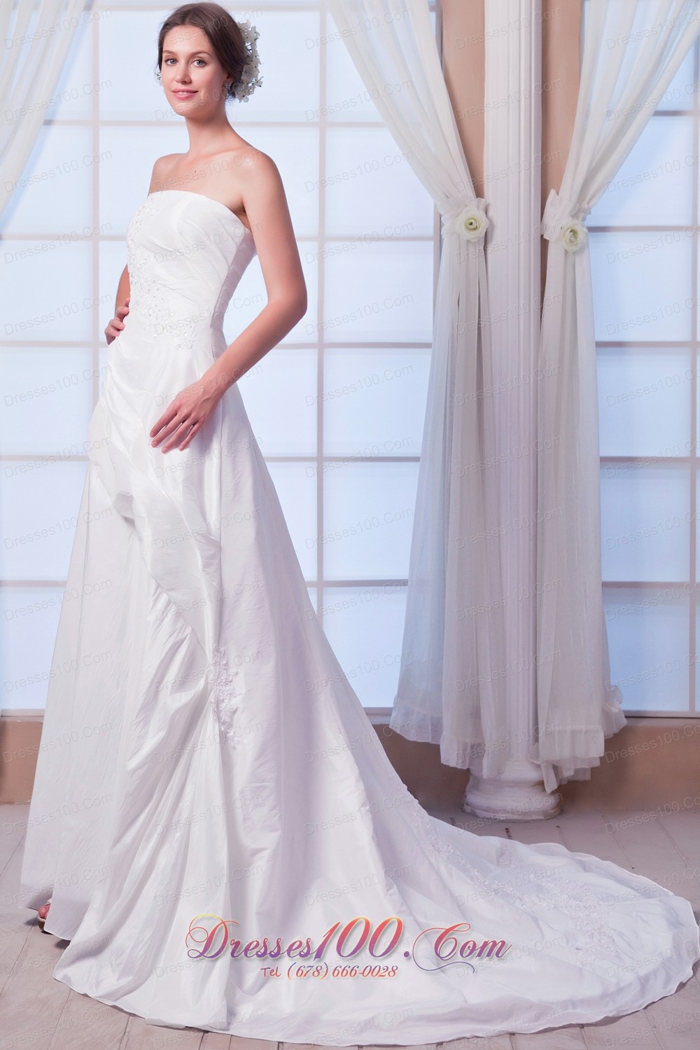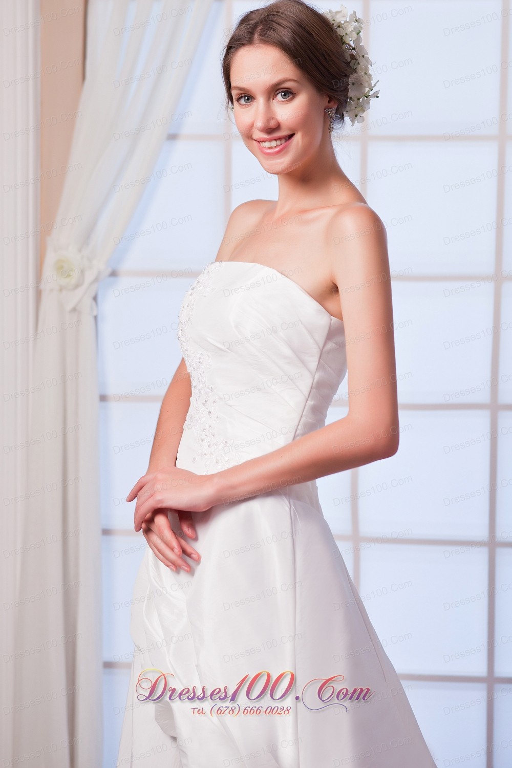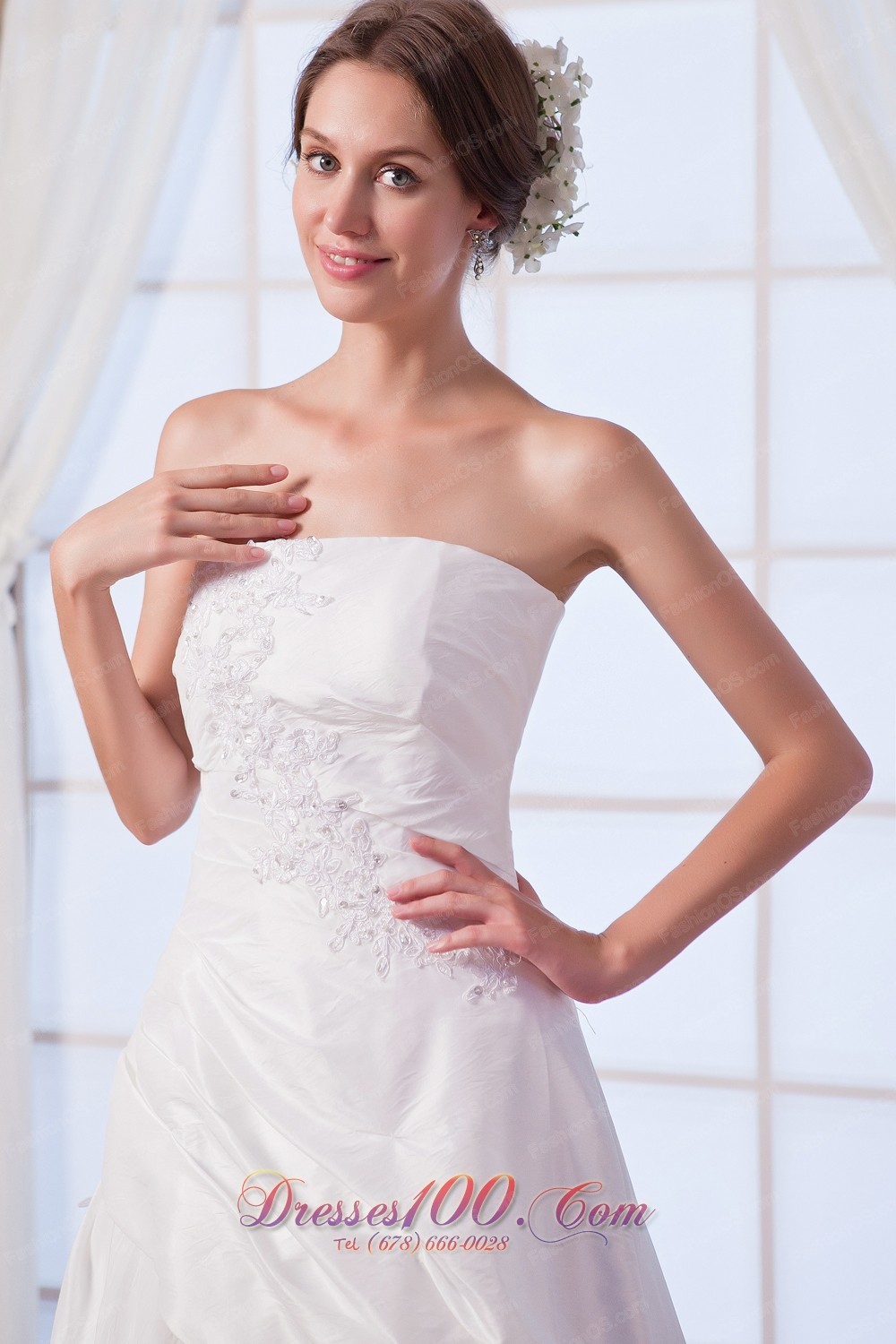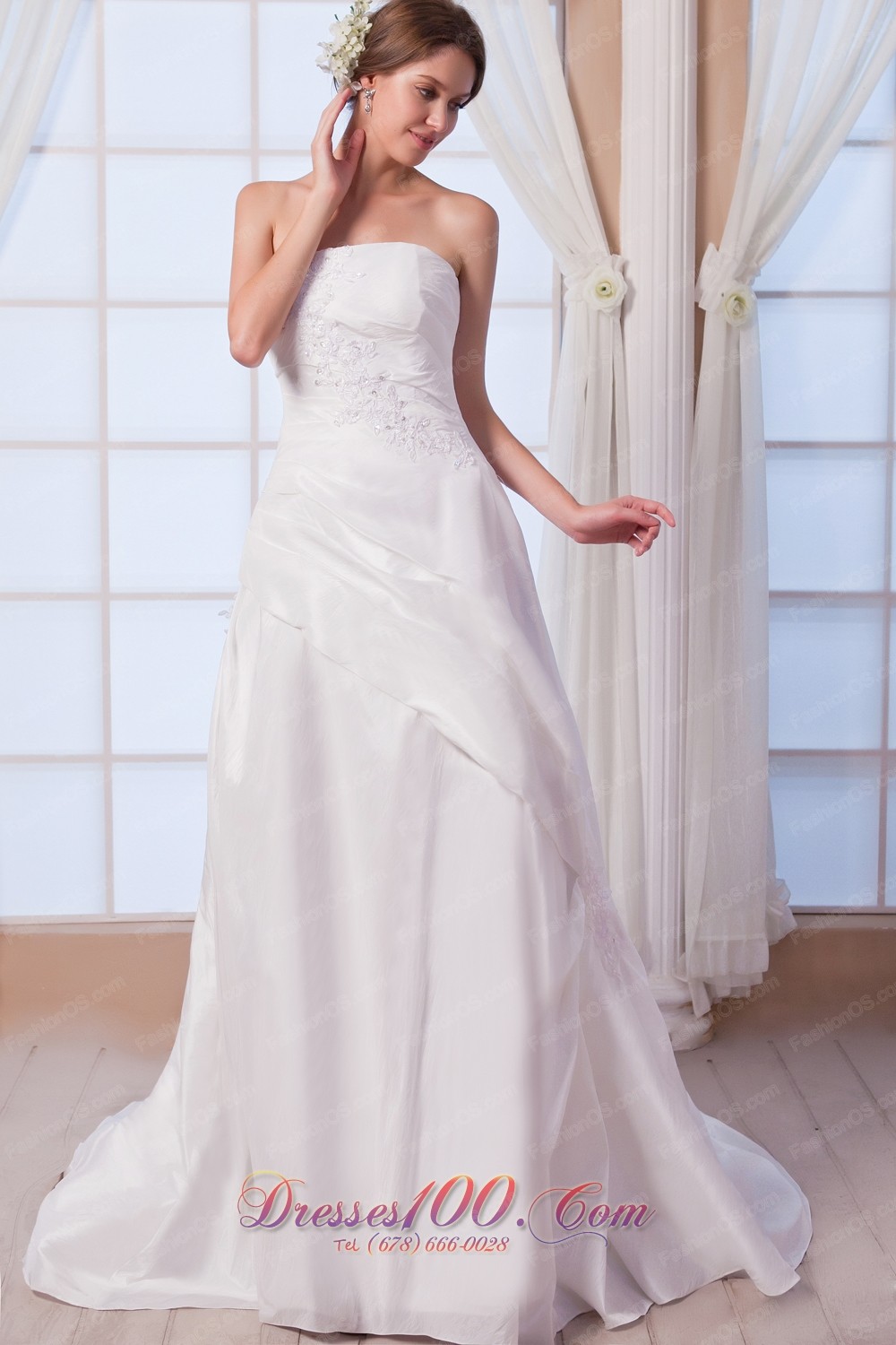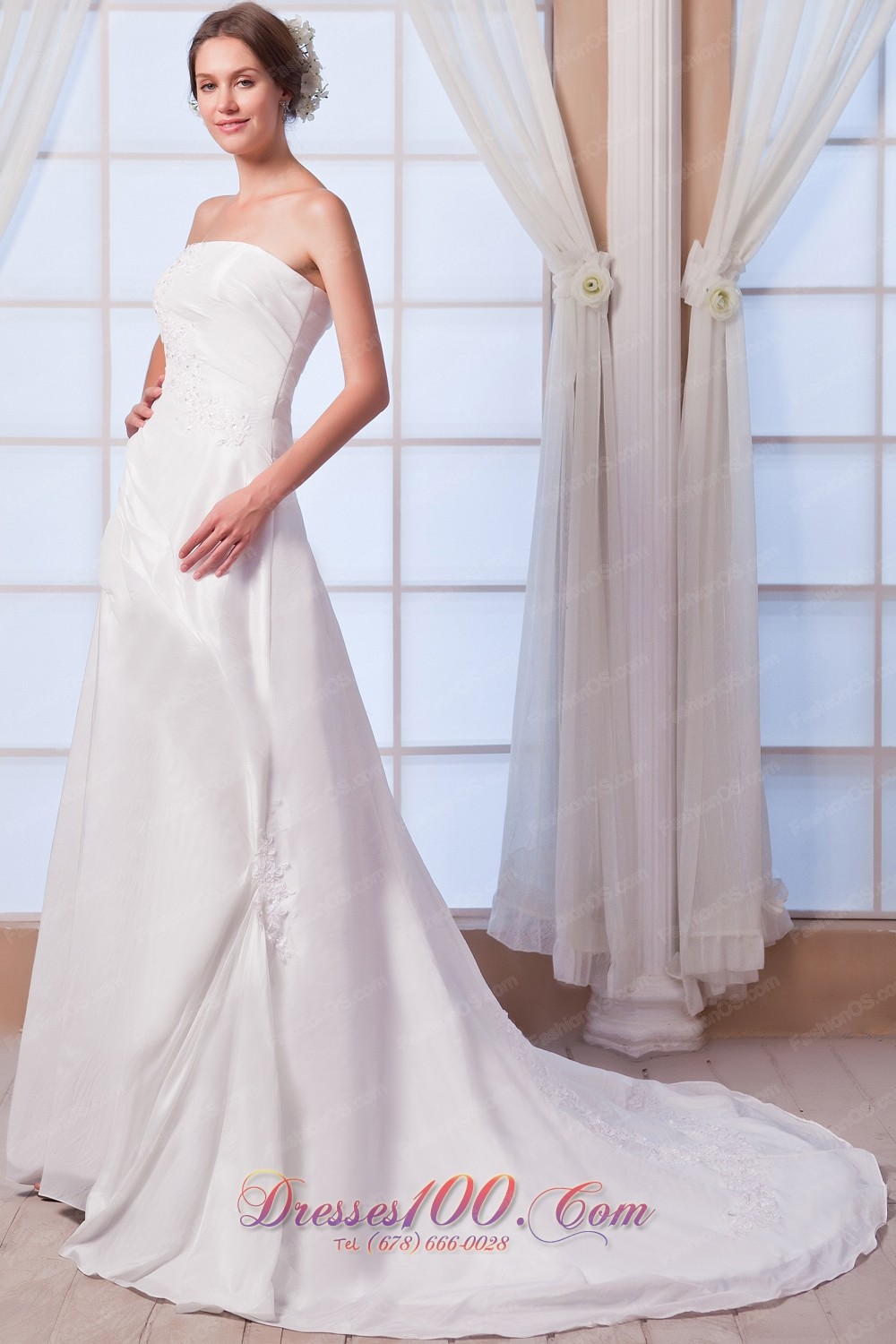 Appliques Bridal Dress A-line Strapless Princess Anne Style