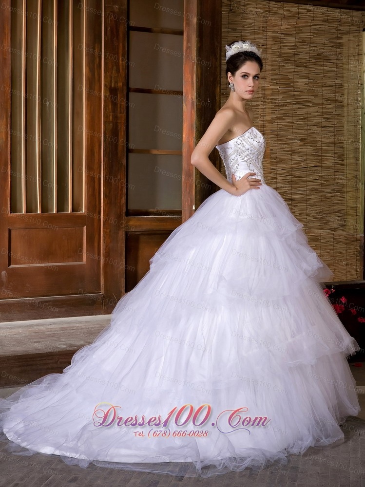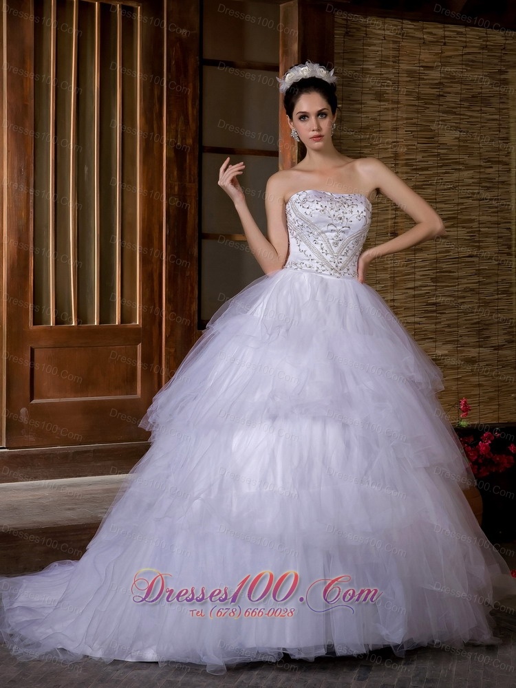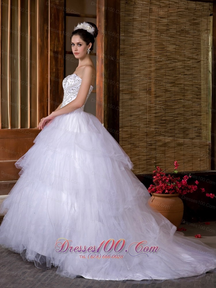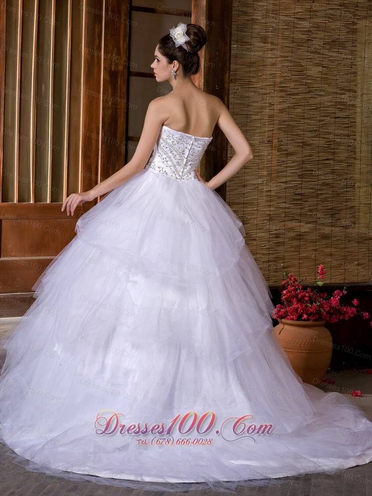 Ball Gown Strapless Chapel Train Wedding Gown Dresses