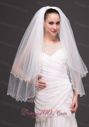 Ribbon Edge Drop Bridal Veils Tulle Two-tier