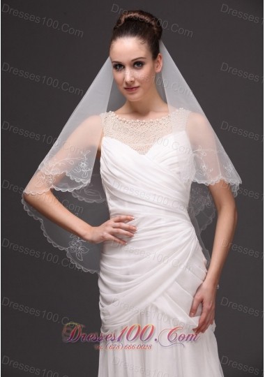 Embroidery Tulle Drop Bridal Veils For Wedding Two-tier