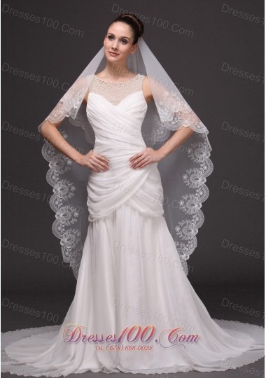 Lace Applique Edge Bridal Veils For Wedding Two-tier