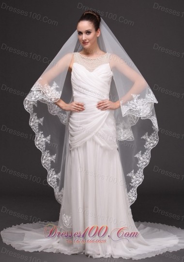 Graceful Wedding Veil 2013 Lace Appliqued Tulle
