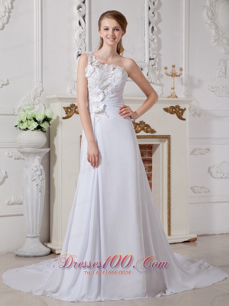 Wonderful Floral Wedding Bridal Dress One Shoulder Appliques