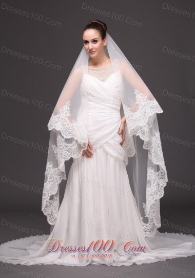 Lace Applique One-tiered Cathedral Tulle Wedding Veil