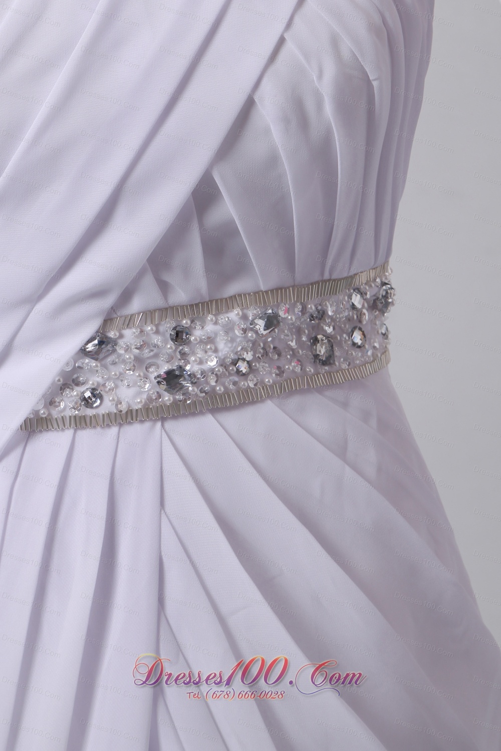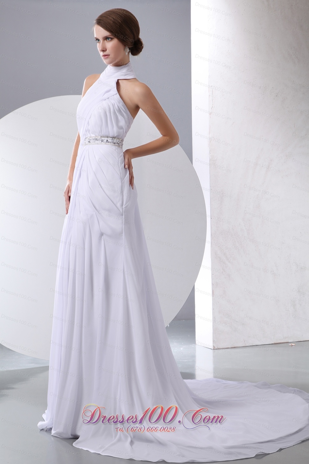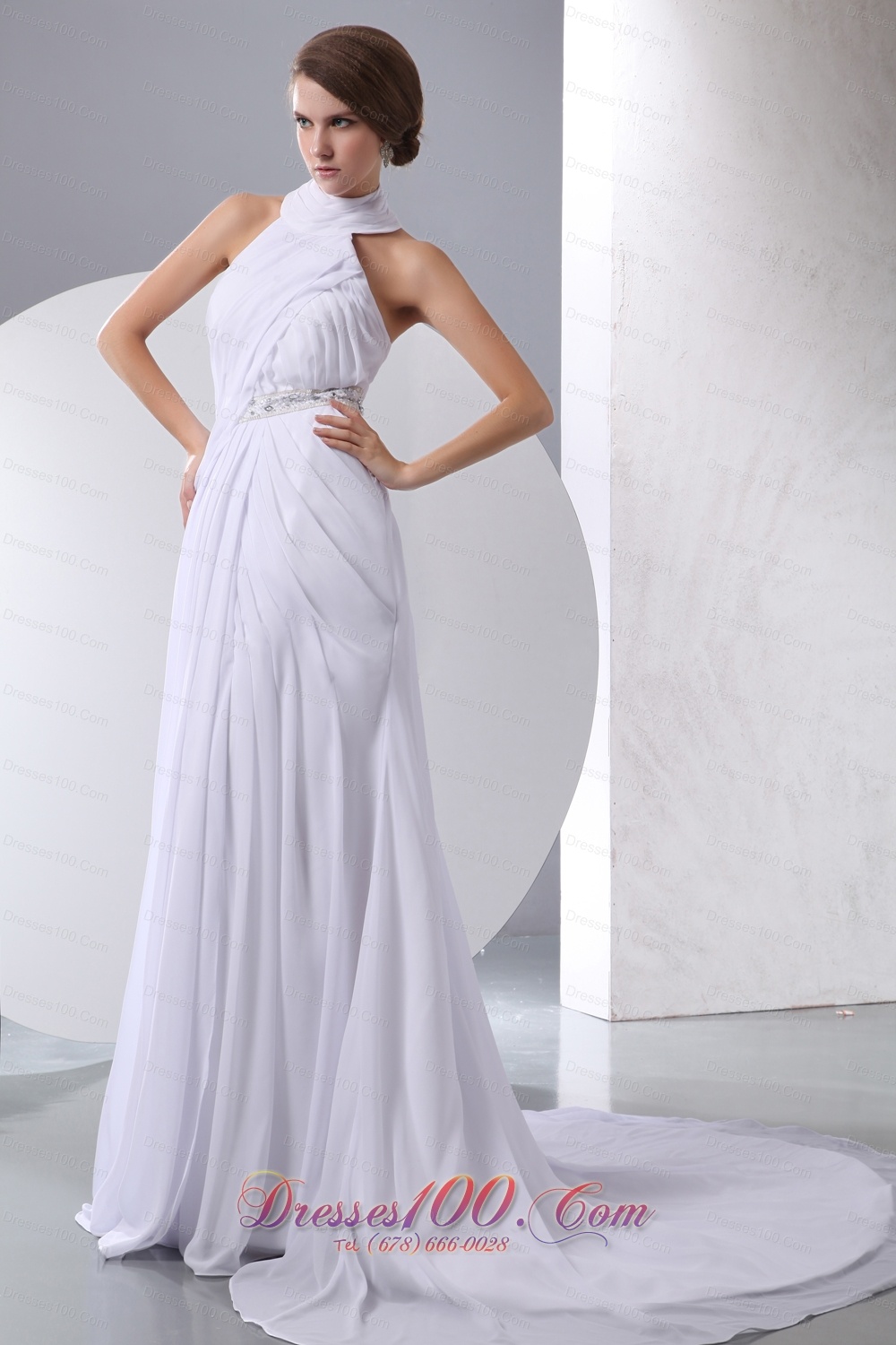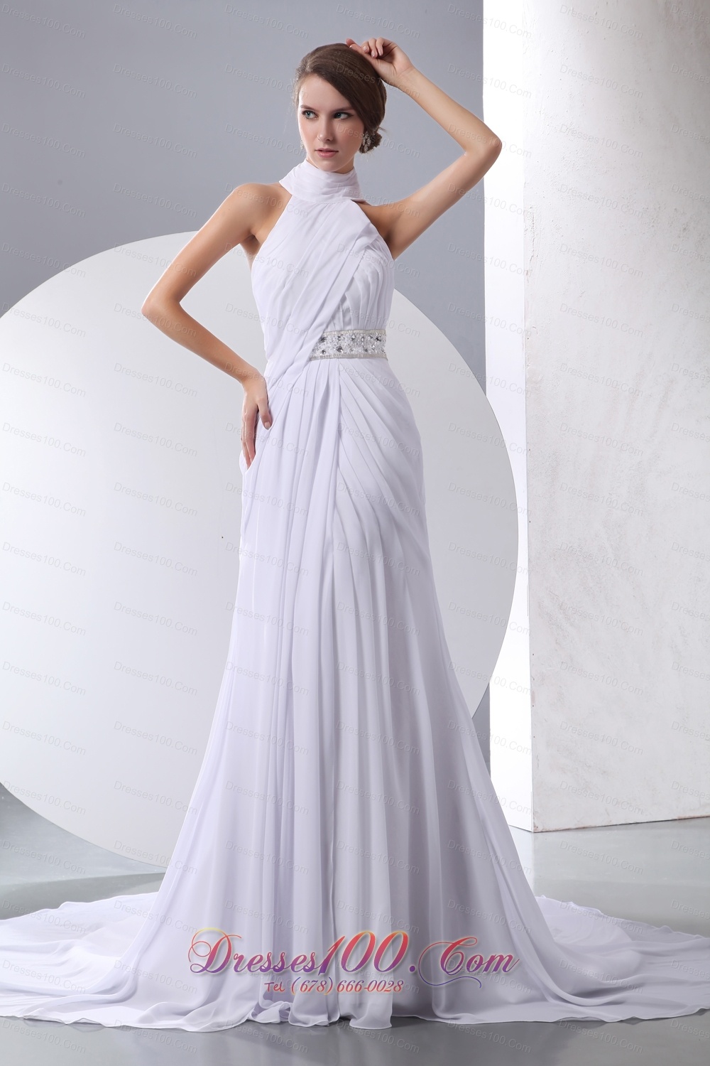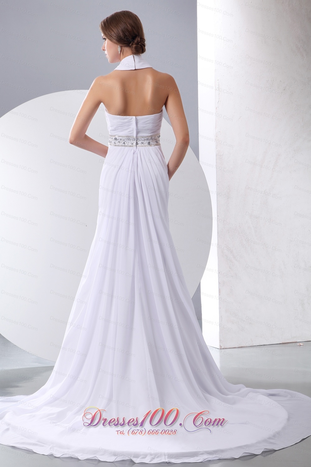 Halter Beading and Ruch Chapel Train Wedding Gown