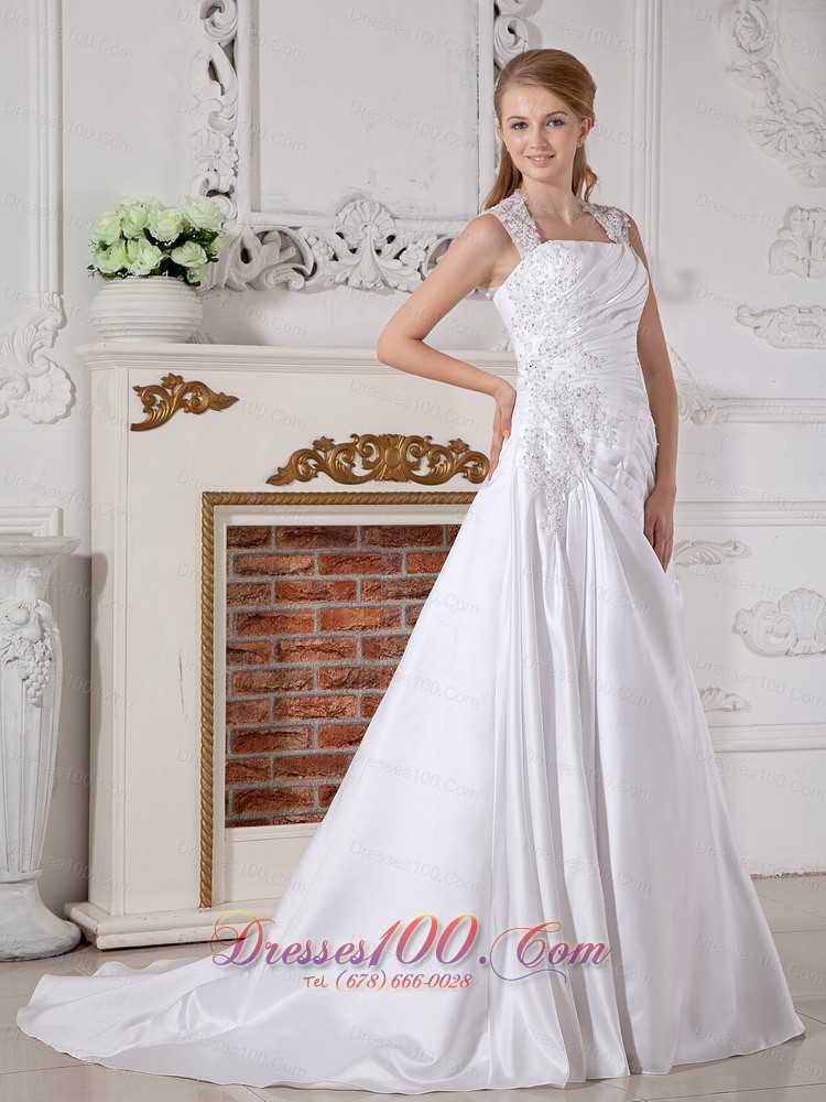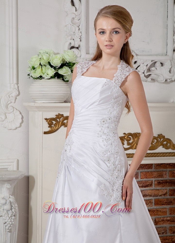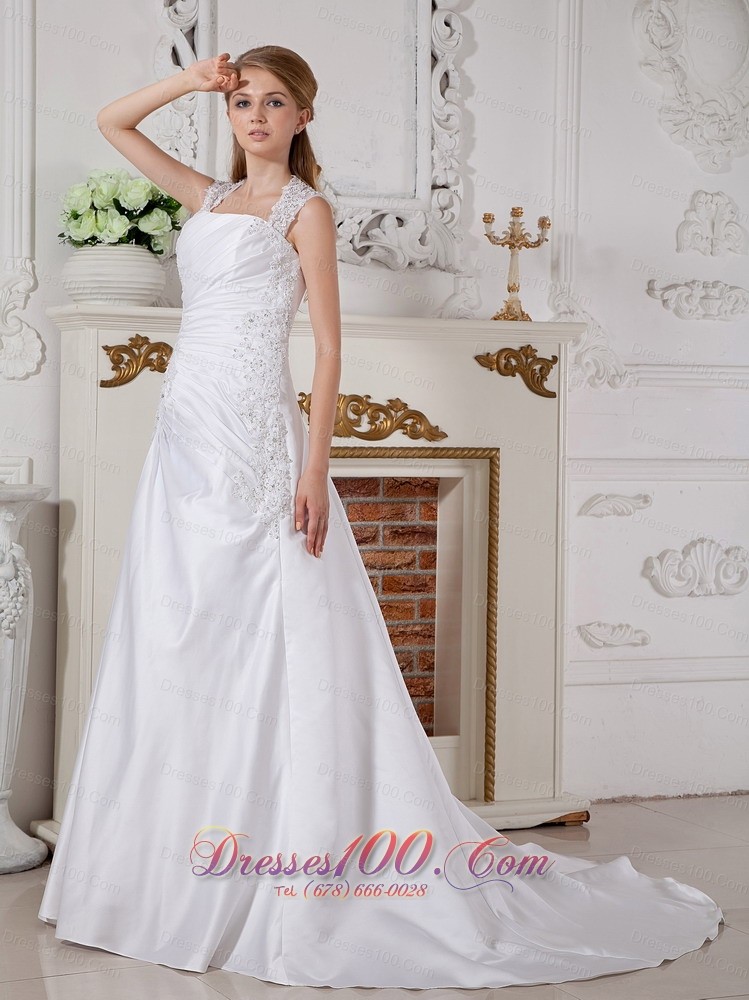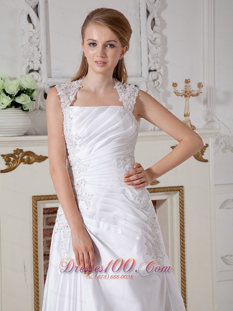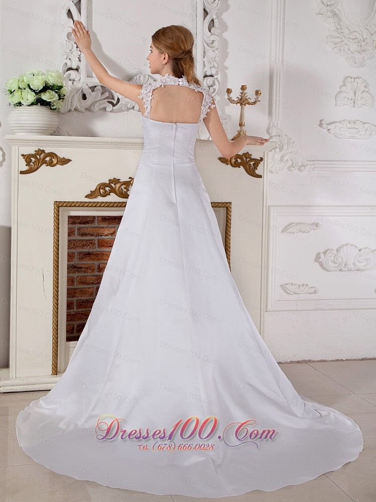 Customize Cap Sleeved Square Bridal Gowns Appliques Court