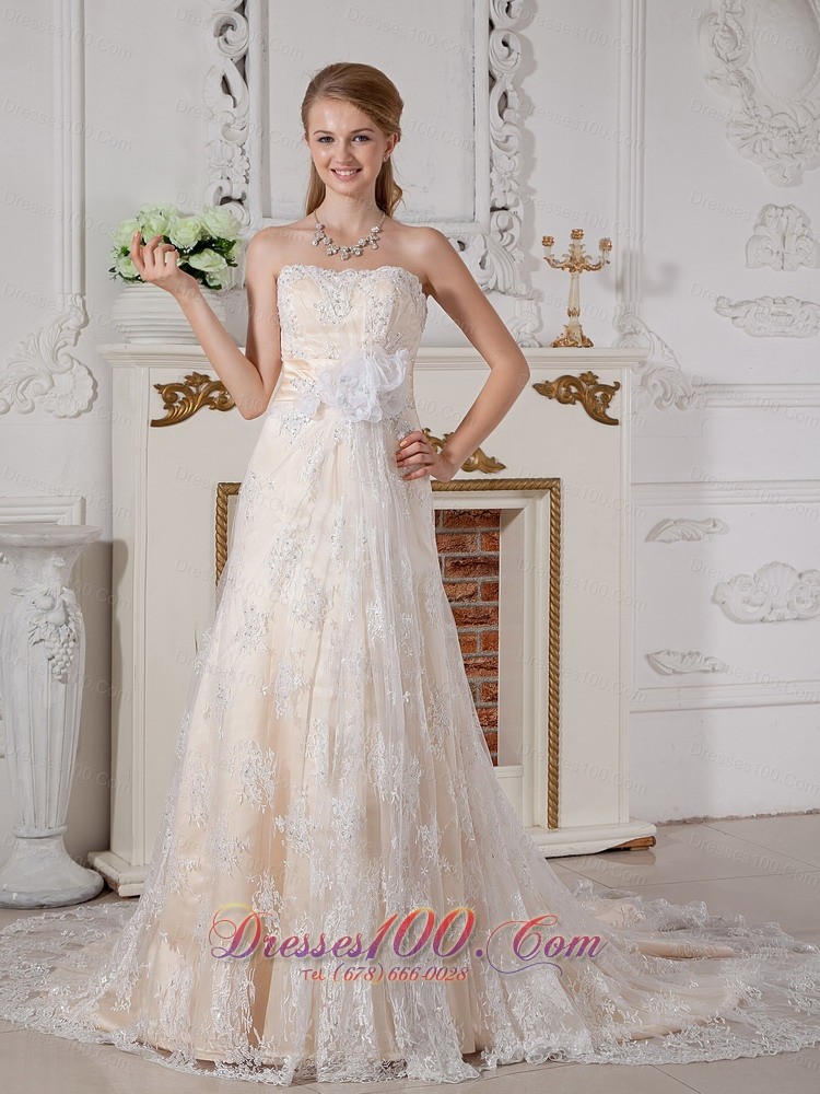 Lovely Champagne Empire Wedding Dress Lace Court Train