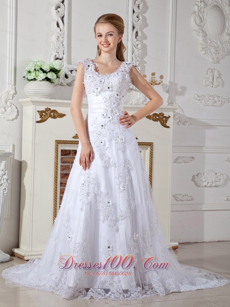 Discount A-line Scoop Lace Garden Wedding Dress Appliques
