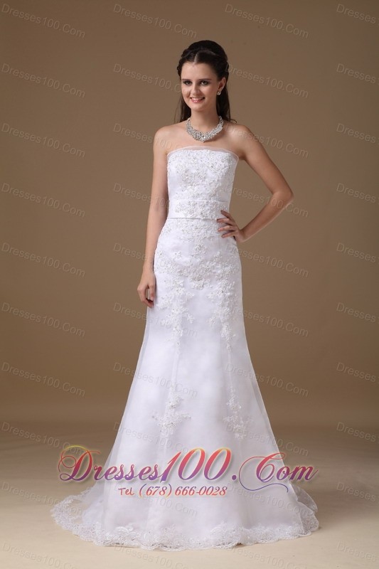 Princess Lace Wedding Dress A-line Strapless Bowknot