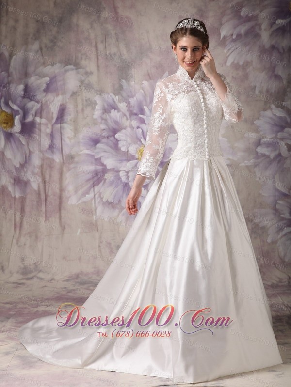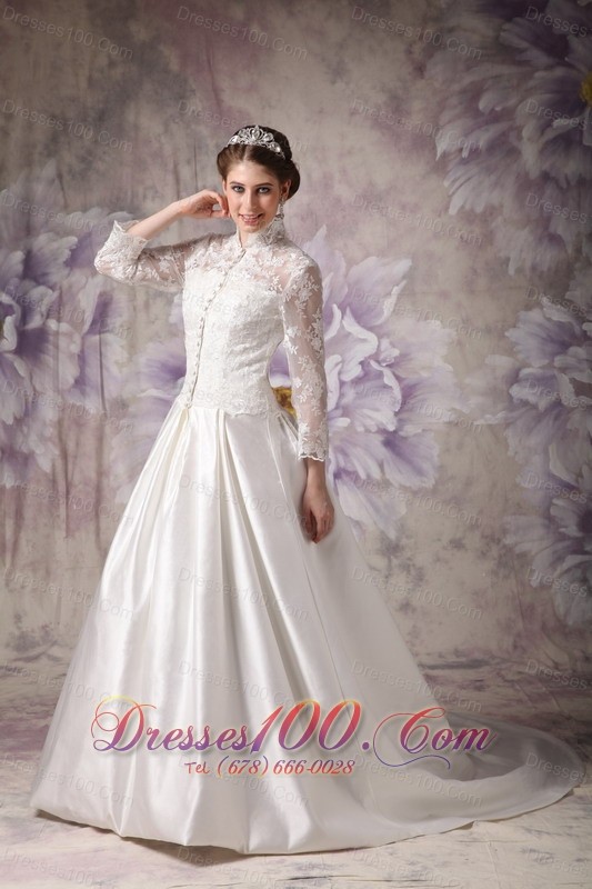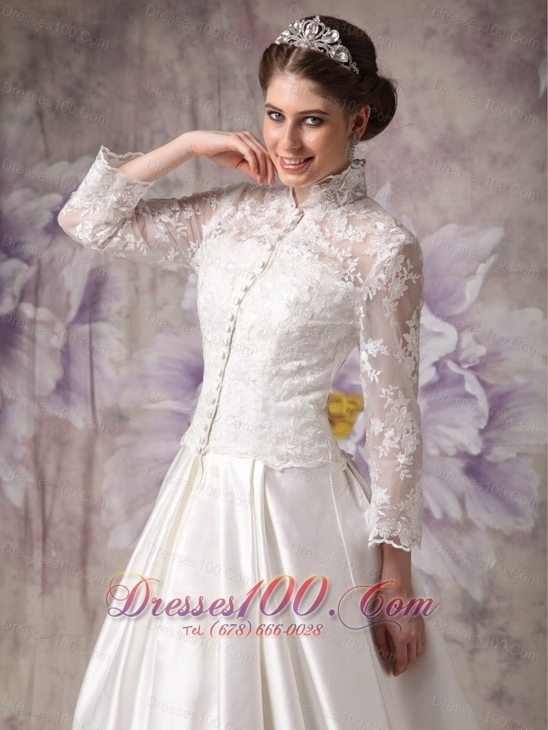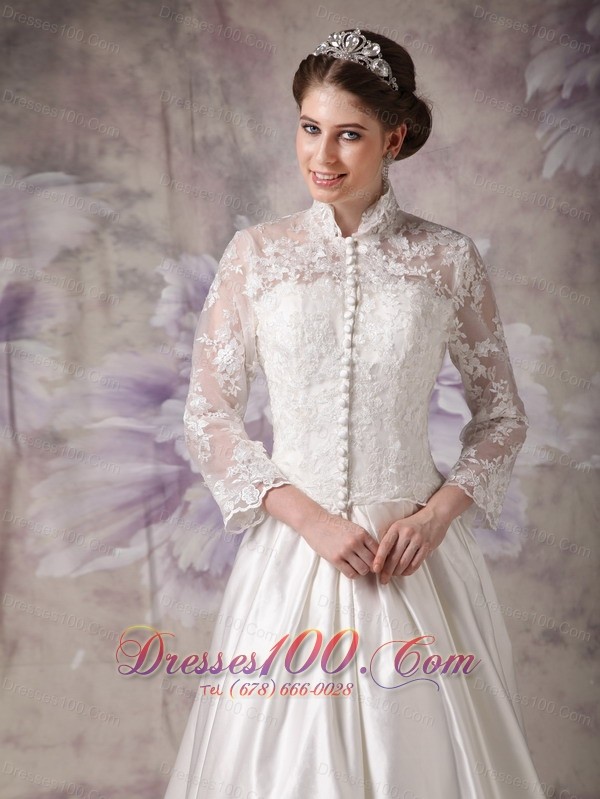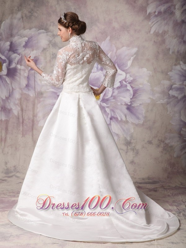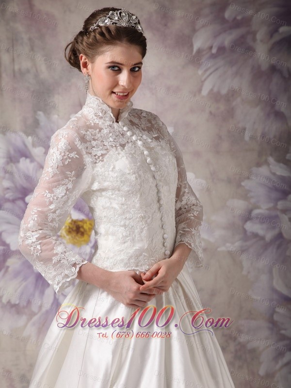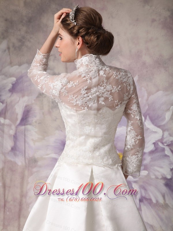 Convertible Ivory Winter Wedding Dress A-line High-neck Lace