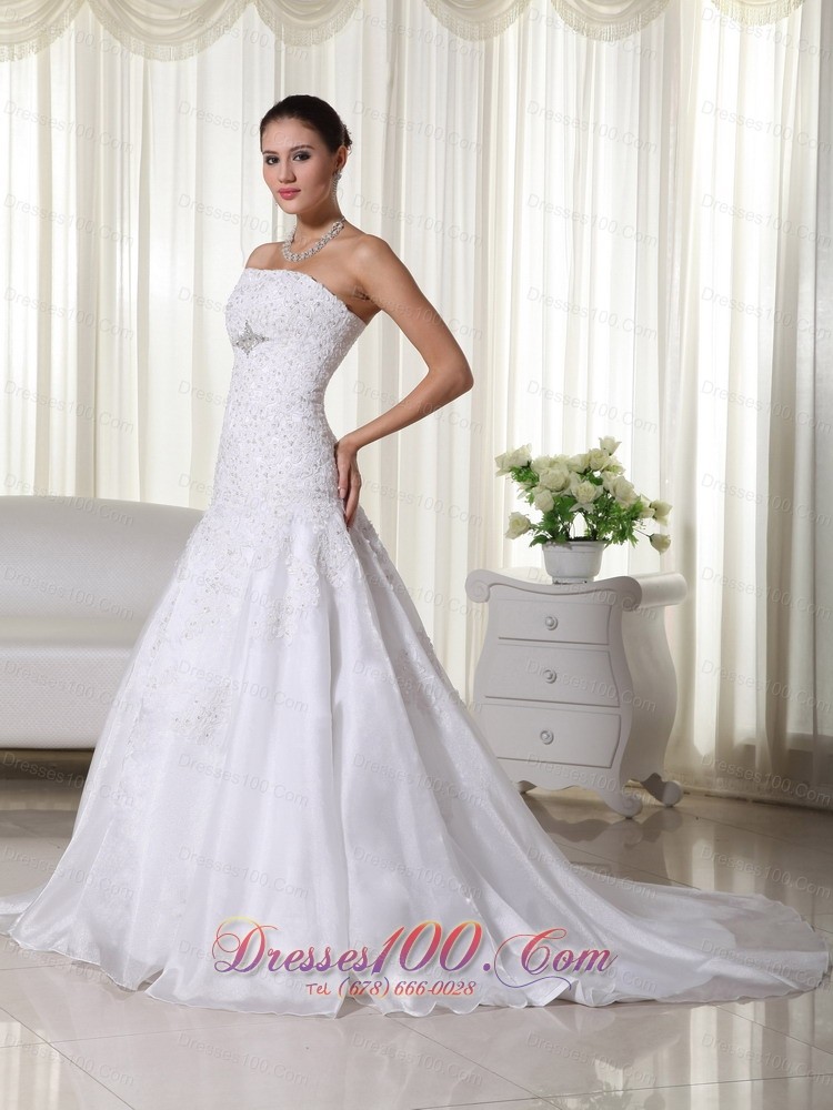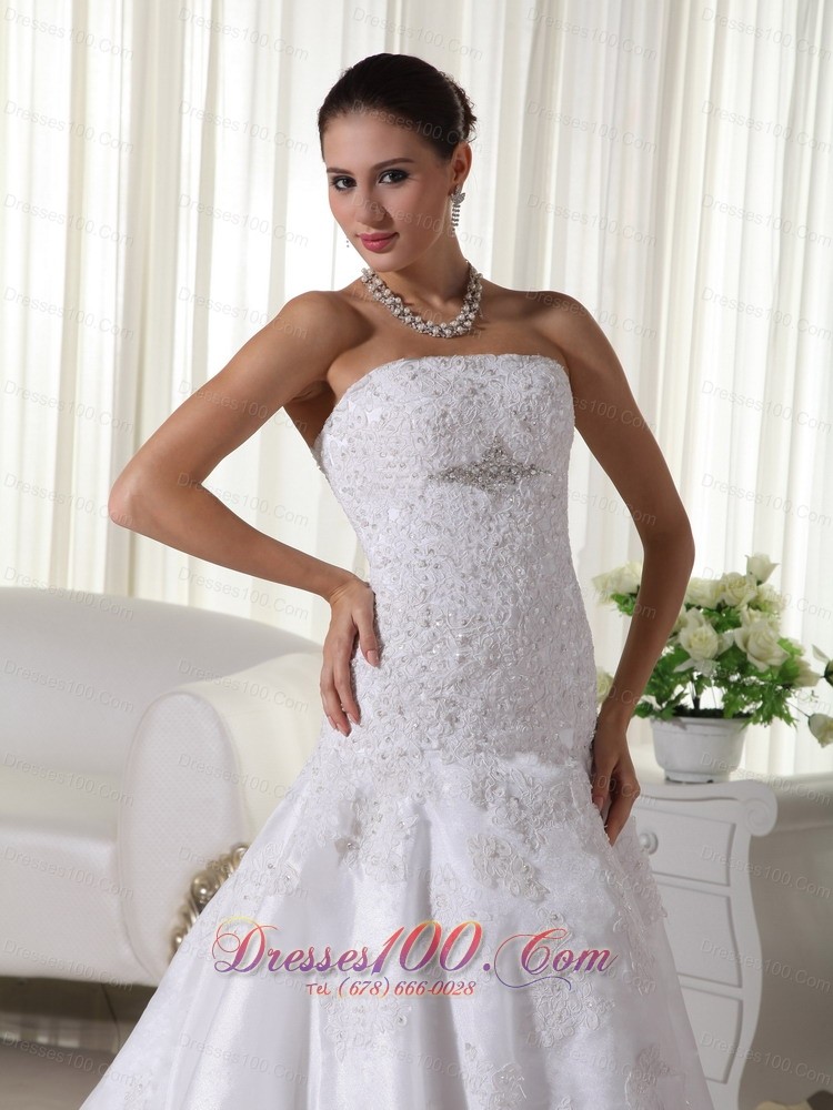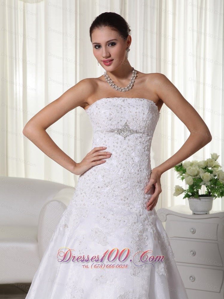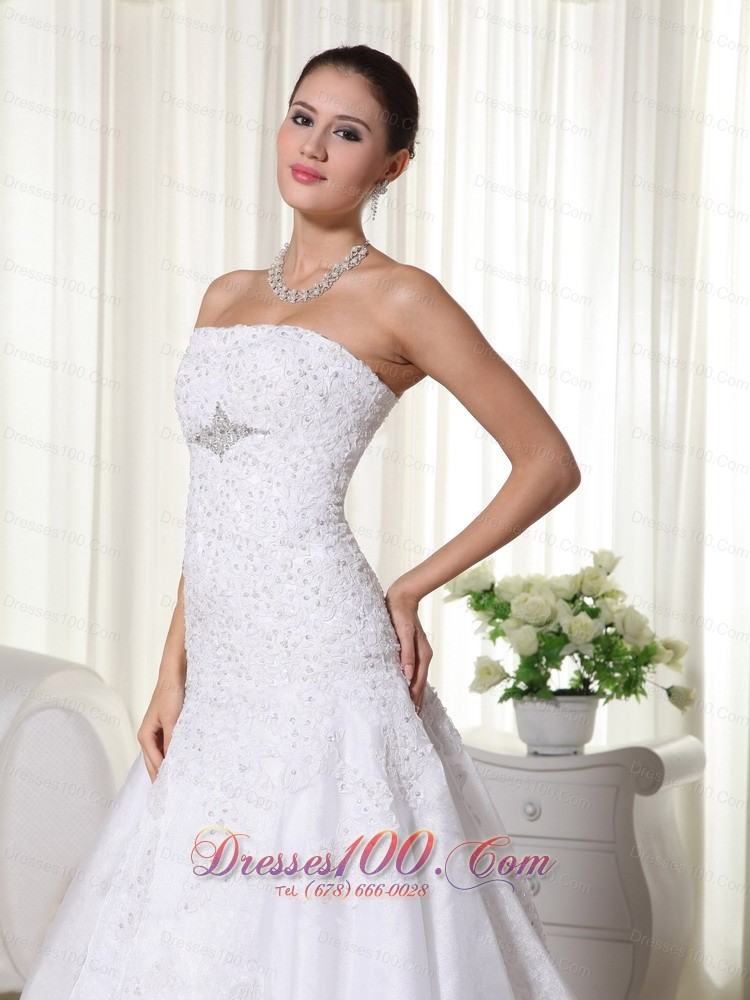 Spring Mermaid Strapless Lace Wedding Bridal Dress Brooch