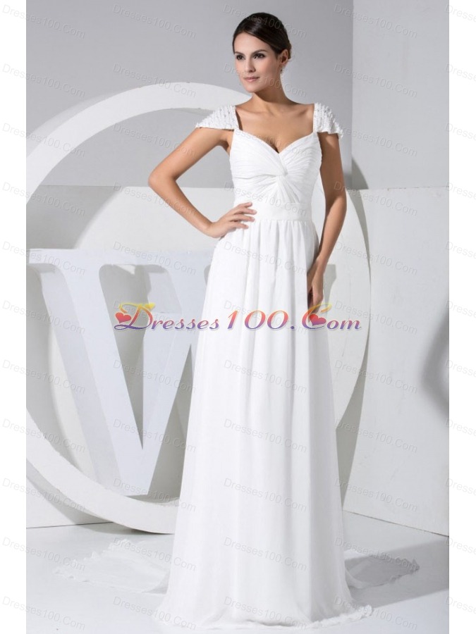 Cap Sleeves Beading V-neck Watteau Dress Wedding