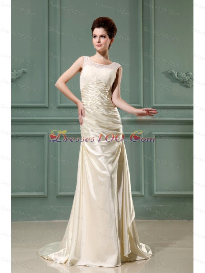 Scoop Champagne Wedding Dress For Bridal Column Brush