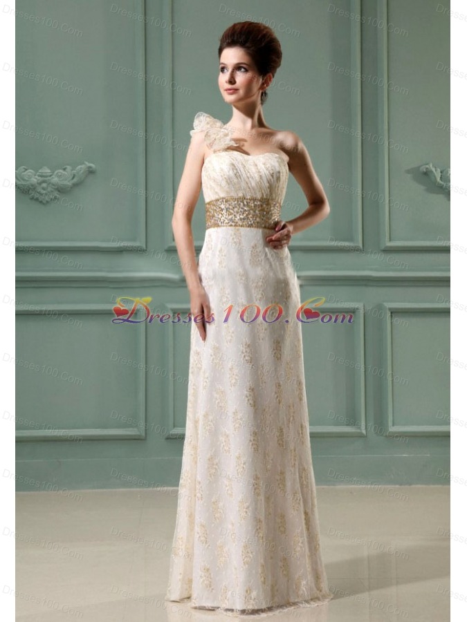 One Shoulder Beading Wedding Dress Champagne