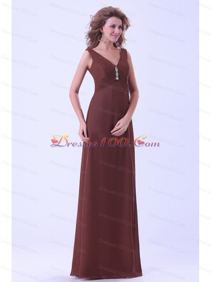 Simple Brown Mother Dress V-neck Empire Chiffon