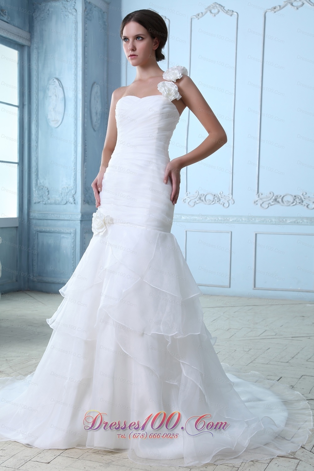 One Shoulder Hand Made Flower Mermaid Wedding Gown