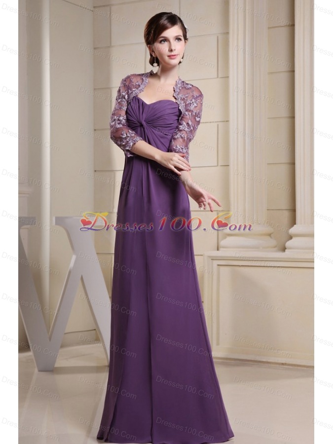 Lace Jacket Mother Bride Dress Ruch Purple Long